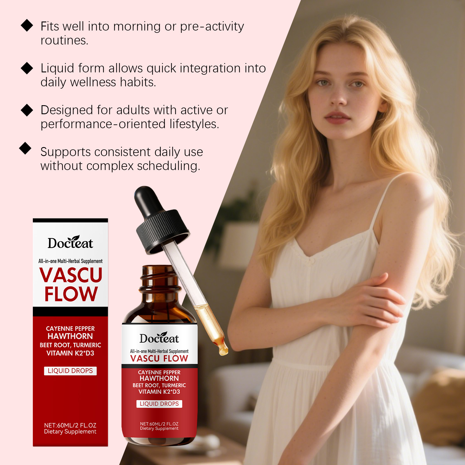 我们的辣椒提取物滴剂,由维生素 D (以胆钙化醇形式)(D3)、 维生素 K2 (以甲萘醌-7 形式)精心调配而成。专为支持与积极生活方式相符的日常新陈代谢,促进运动和体力活动期间的血液循环设计。使用方法极为便捷:一天2ml,直接服用或与其他食物混合服用。并且它可以在日常活动中提供温暖感和感官刺激。