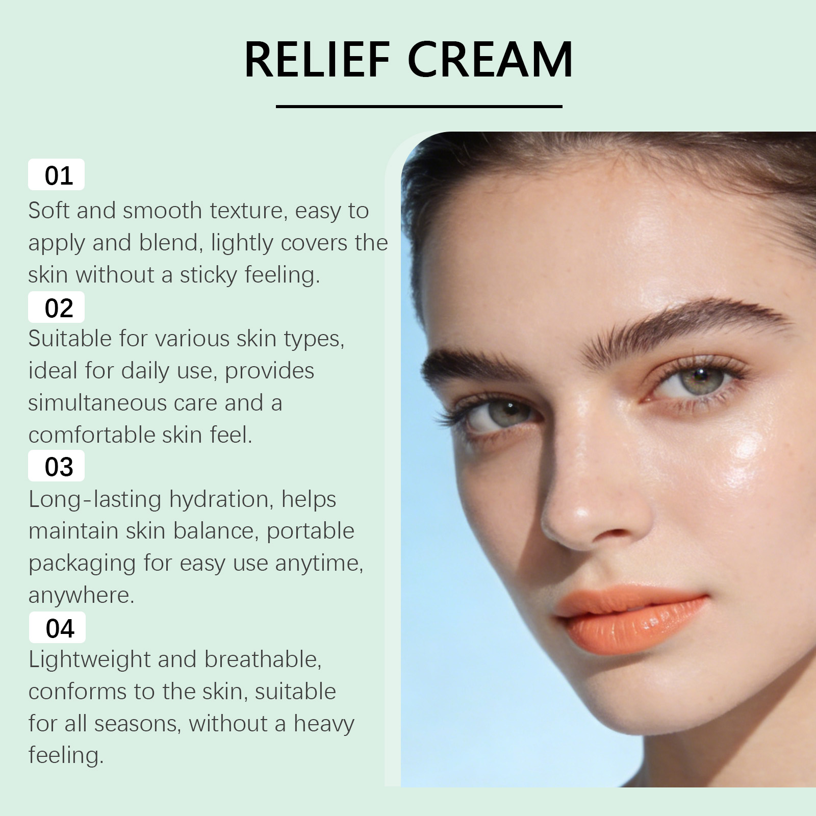 我们的面部保湿霜,由矿油、甘油精心调配而成。专为柔润肤表,维持肌肤水润状态,提升舒适触感,轻覆锁润,助力改善肤表干燥,维持柔润质感设计。使用方法极为便捷:1.洁面或沐浴后,取适量产品于面部或身体需护理处。2.轻轻涂抹开,轻柔按摩至贴合肤表。并且它可以适配日常护肤,贴合肤质,提升后续护肤适配度,柔护肤感,减少环境影响带来的干燥不适。