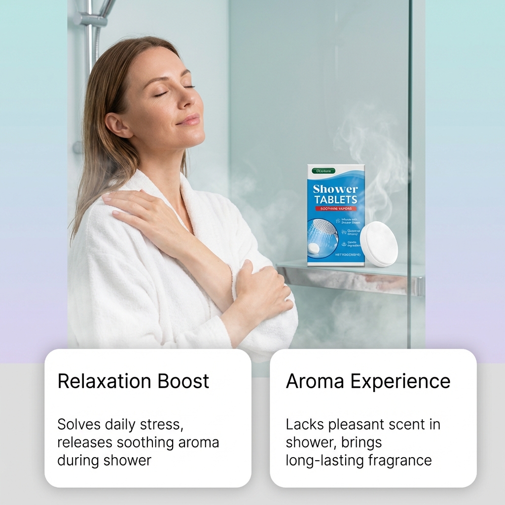 我们的香氛沐浴片,由改性玉米淀粉、纤维素胶精心调配而成。专为缓解日常压力,沐浴时释放舒缓香气,淋浴时缺乏宜人香气带来持久香味设计。使用方法极为便捷:1. 撕开包装,将一片放入淋浴区。2. 将其放置在水流下方,以产生更浓郁的蒸汽。3. 仅限淋浴使用;请勿在浴缸中使用。并且它可以提供宜人香气,有助于营造舒缓的沐浴环境。