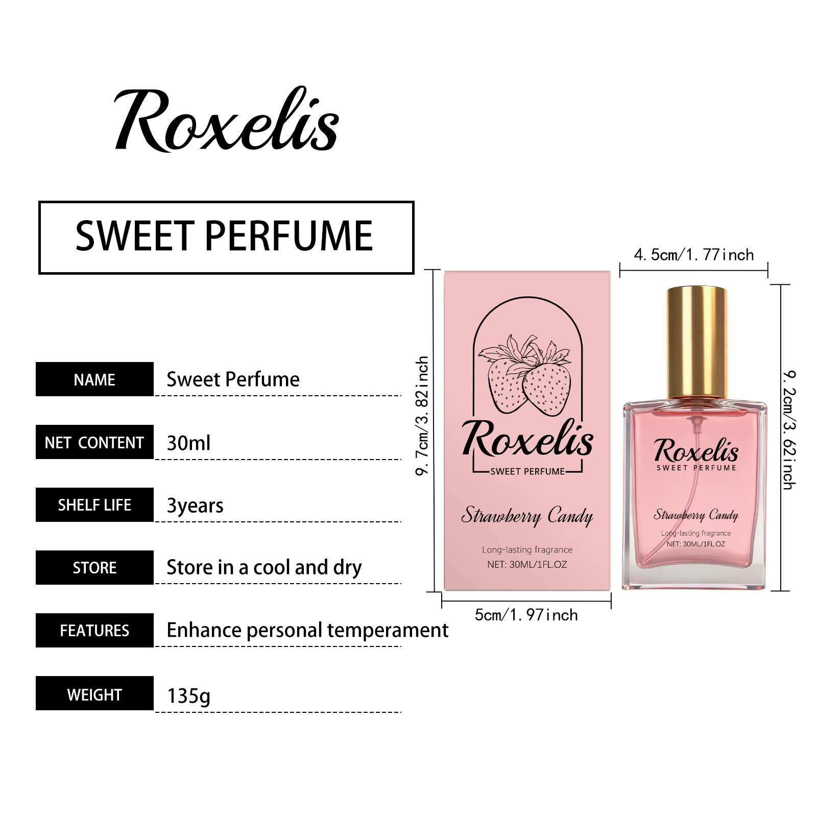 Roxelis Strawberry Candy Sweet Fragrance Natural Fruity Aroma, Fresh And Sweet, With A Touch Of Girlie Charm. Ideal For Daily Outings, Commuting, And Carrying Around.