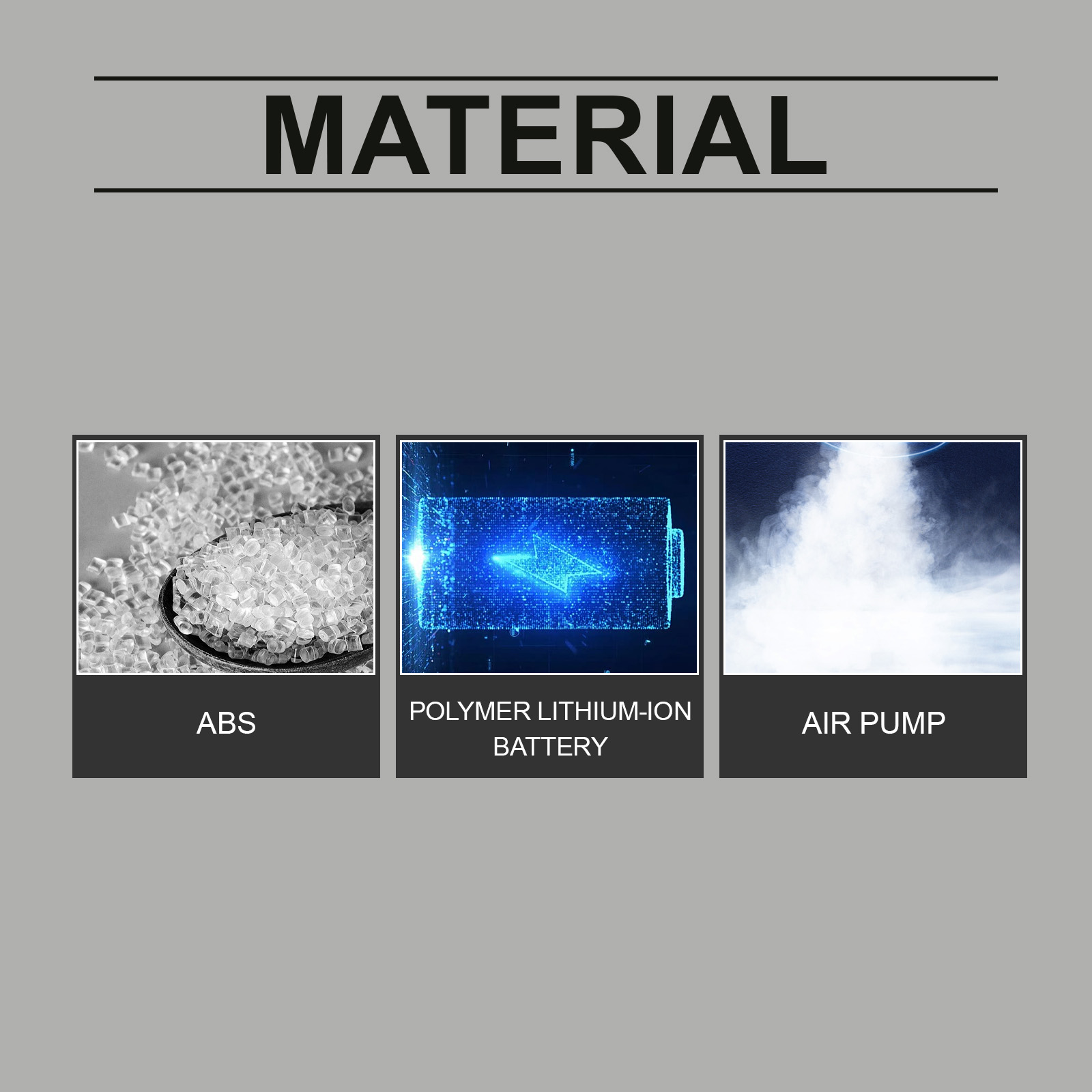 | 材质 | ABS+聚合物锂电池+气泵 |