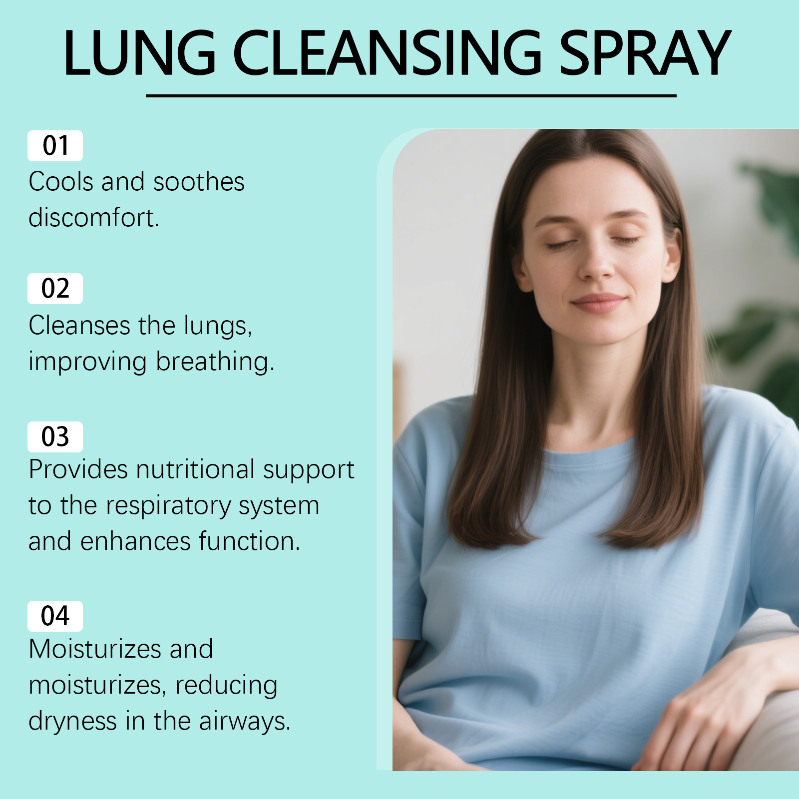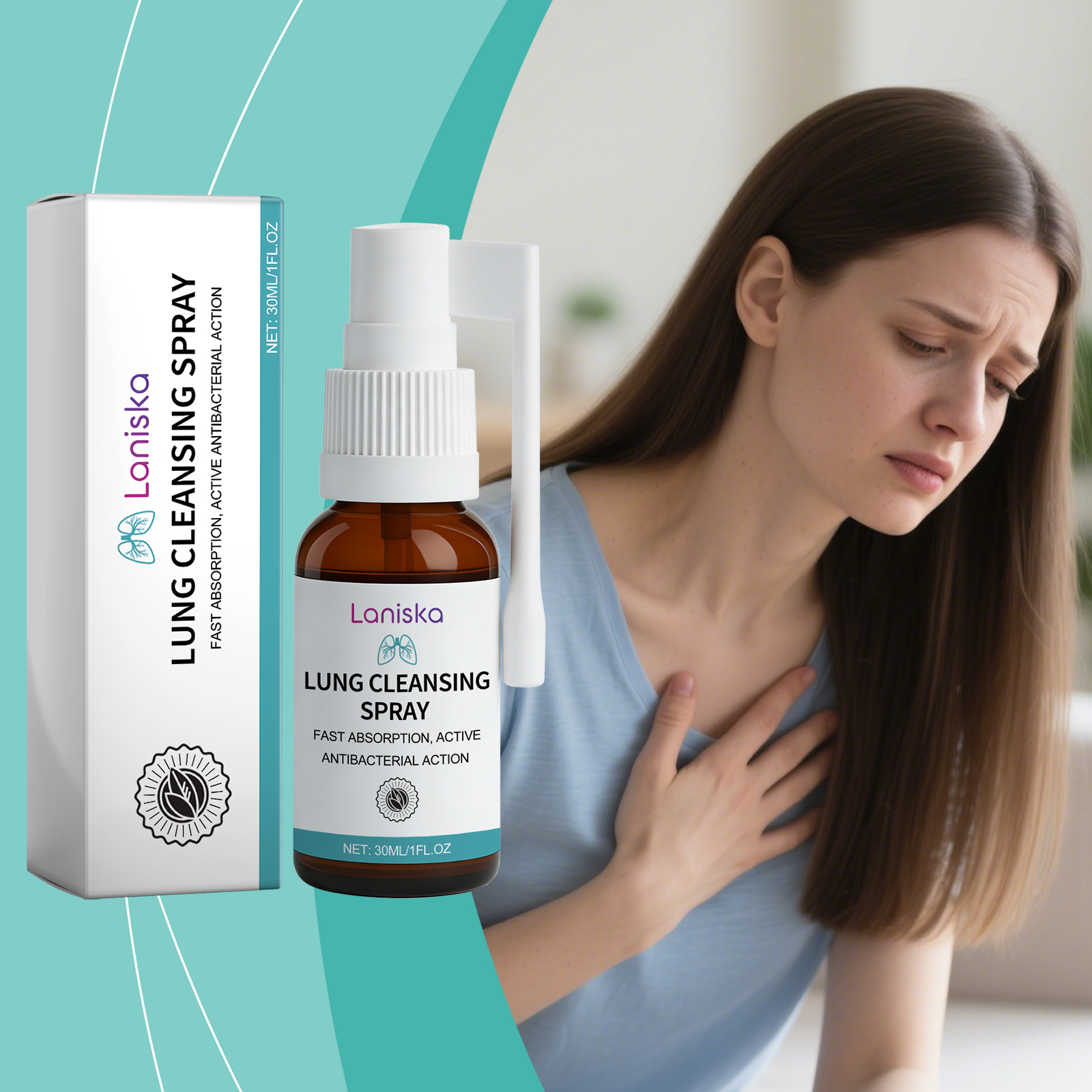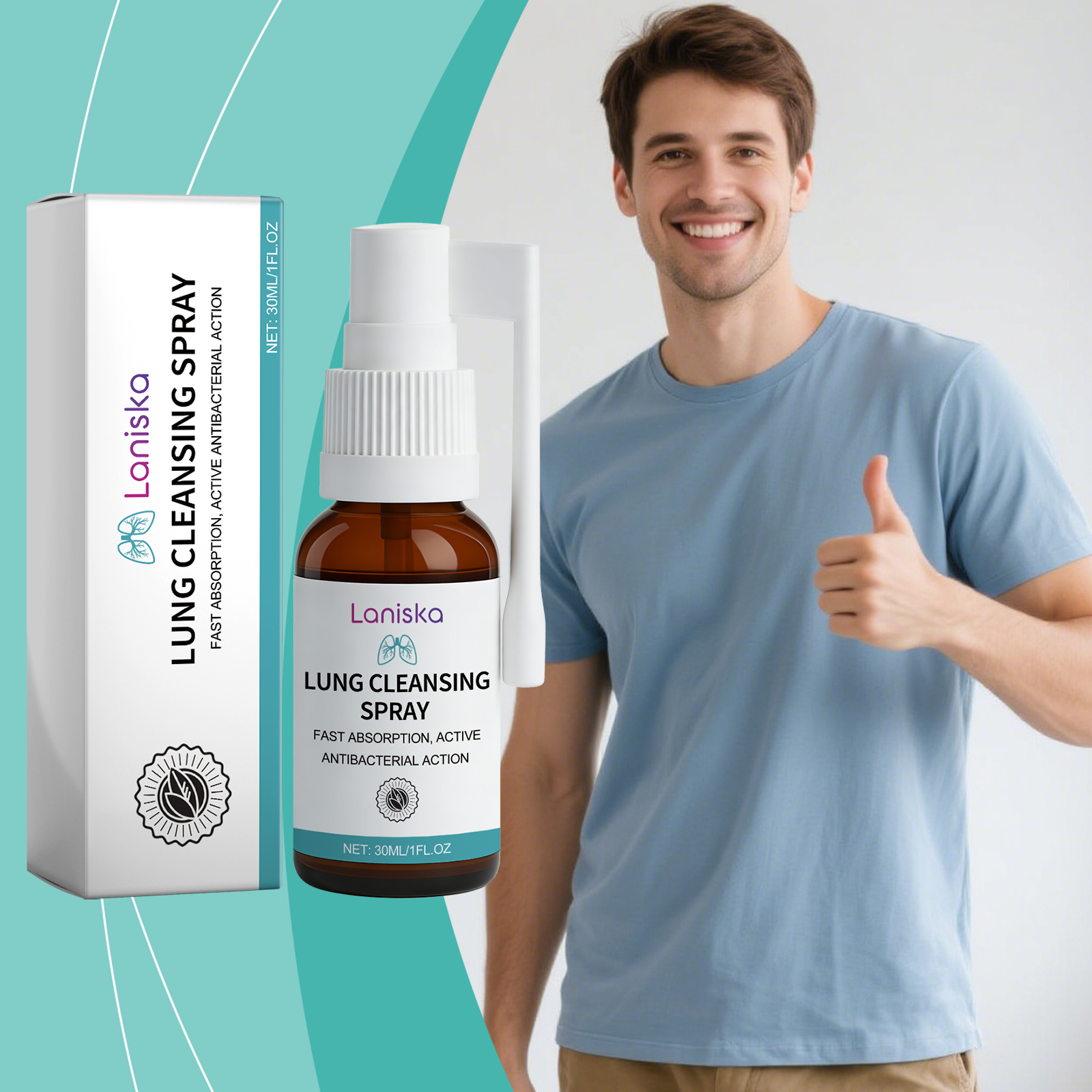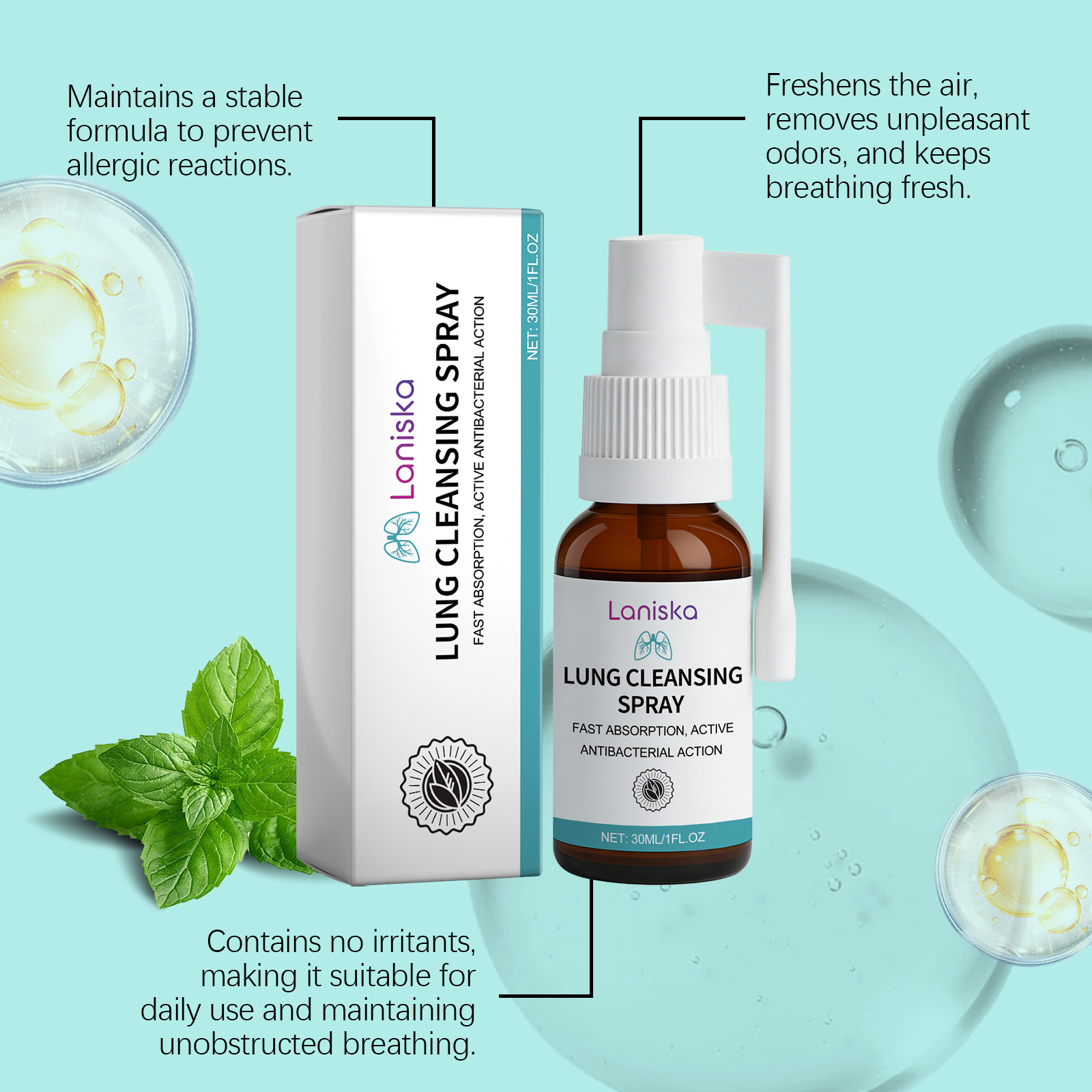 我们的身体护理喷雾,由薄荷醇、毛蕊花提取物精心调配而成。专为有效分解肺部黏液,保持呼吸道畅通设计米。使用方法极为便捷:1.轻轻摇晃瓶子,以充分混合。2.对准喉咙,直接喷入口腔。3.每日使用两次,以获得最佳效果。并且可以深层清洁肺部,促进清新呼吸环境。