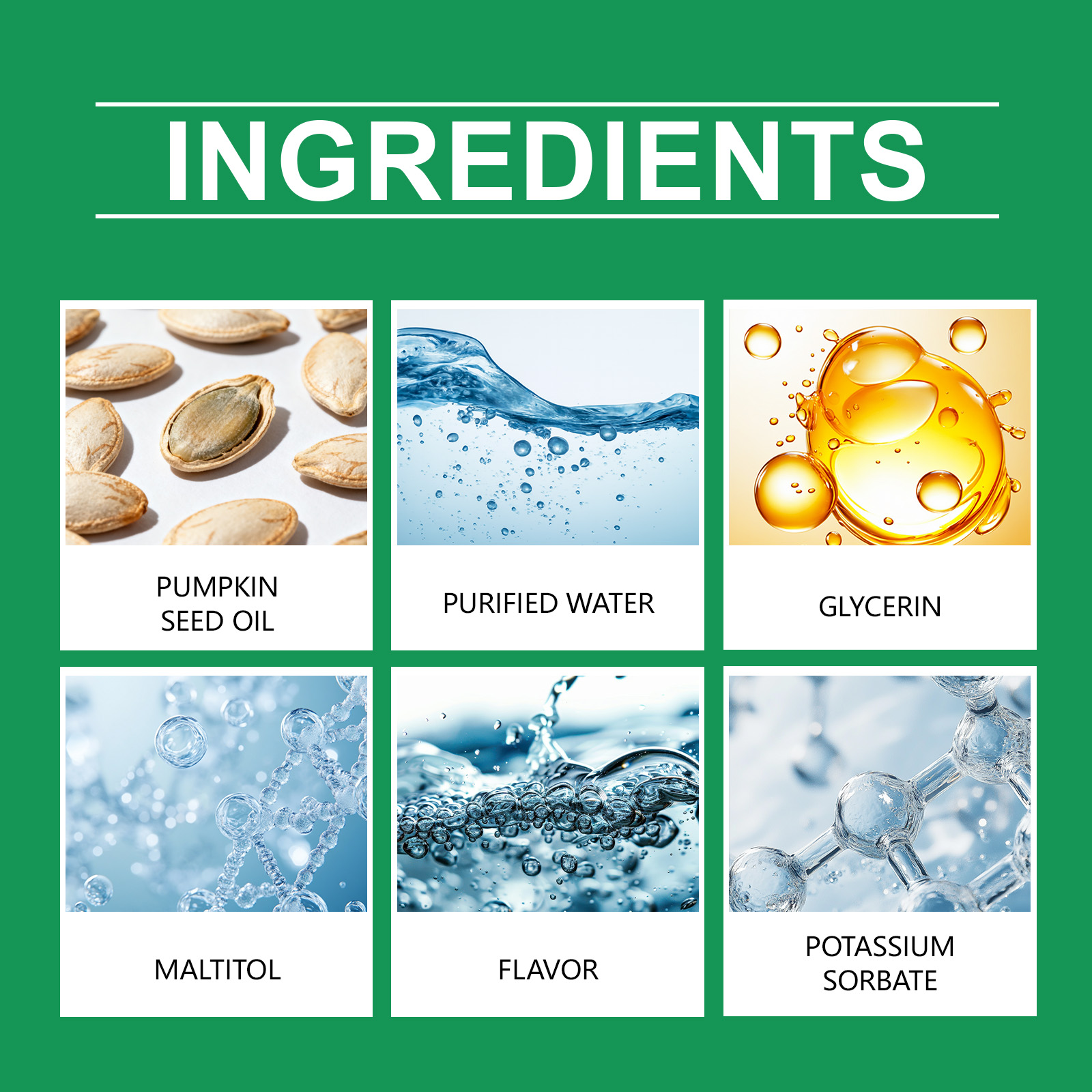 我们的南瓜籽油滴剂,由甘油、麦芽糖醇精心调配而成。专为维护头发健康和活力,保持肌肤健康柔嫩设计。使用方法极为便捷:一天一次,一次1ml,直接服用或与其他食物混合服用。并且它可以帮助维持泌尿系统功能平衡,维护男性生殖系统舒适健康。