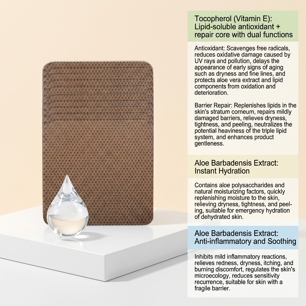 | 成分 | 生育酚(维生素E)、库拉索芦荟提取物 |