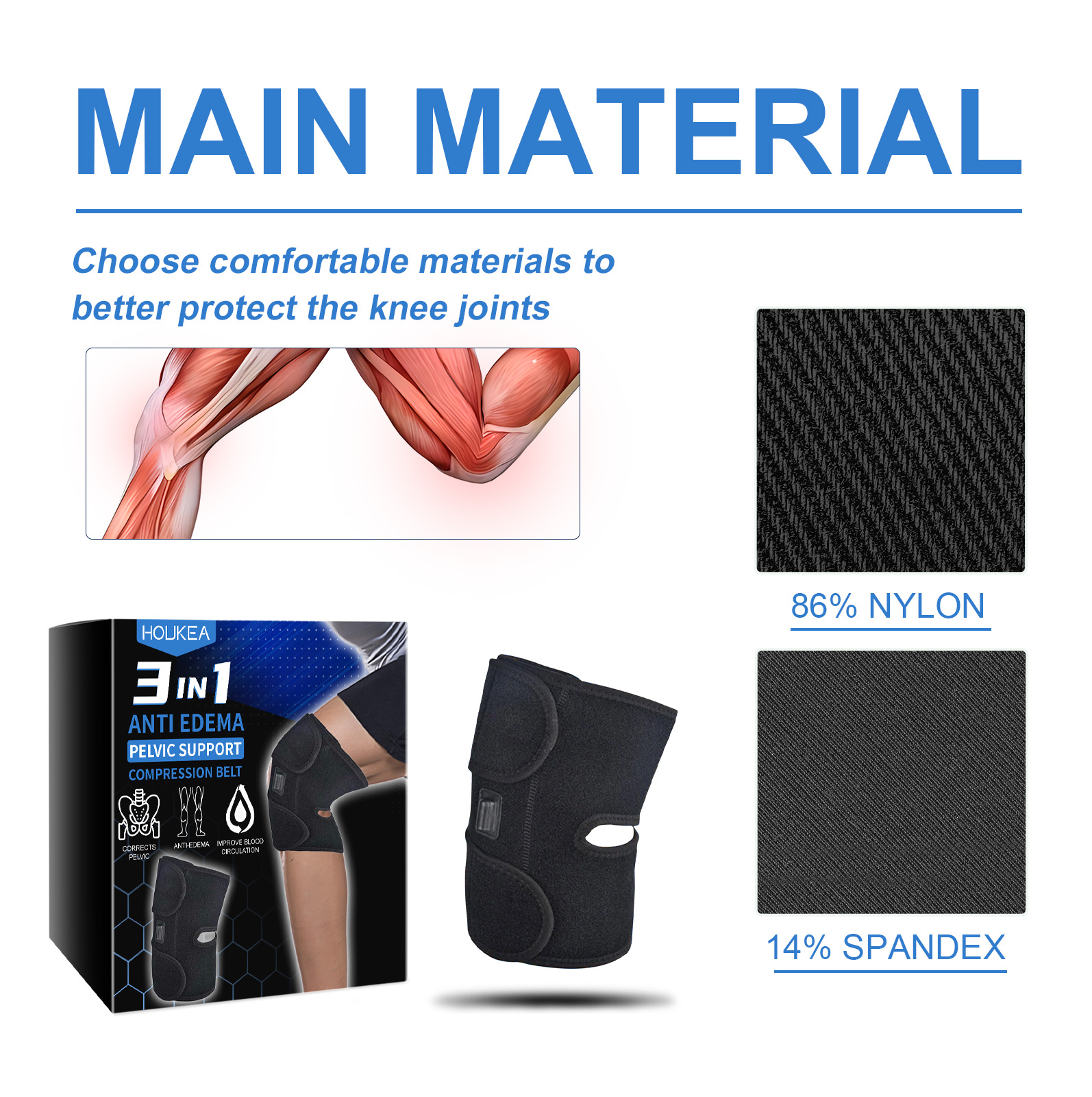 Houkea 3 In 1 Anti Edema Pelvic Support Compression Belt, Ease Leg Joint Discomfort Body Care Knee Brace