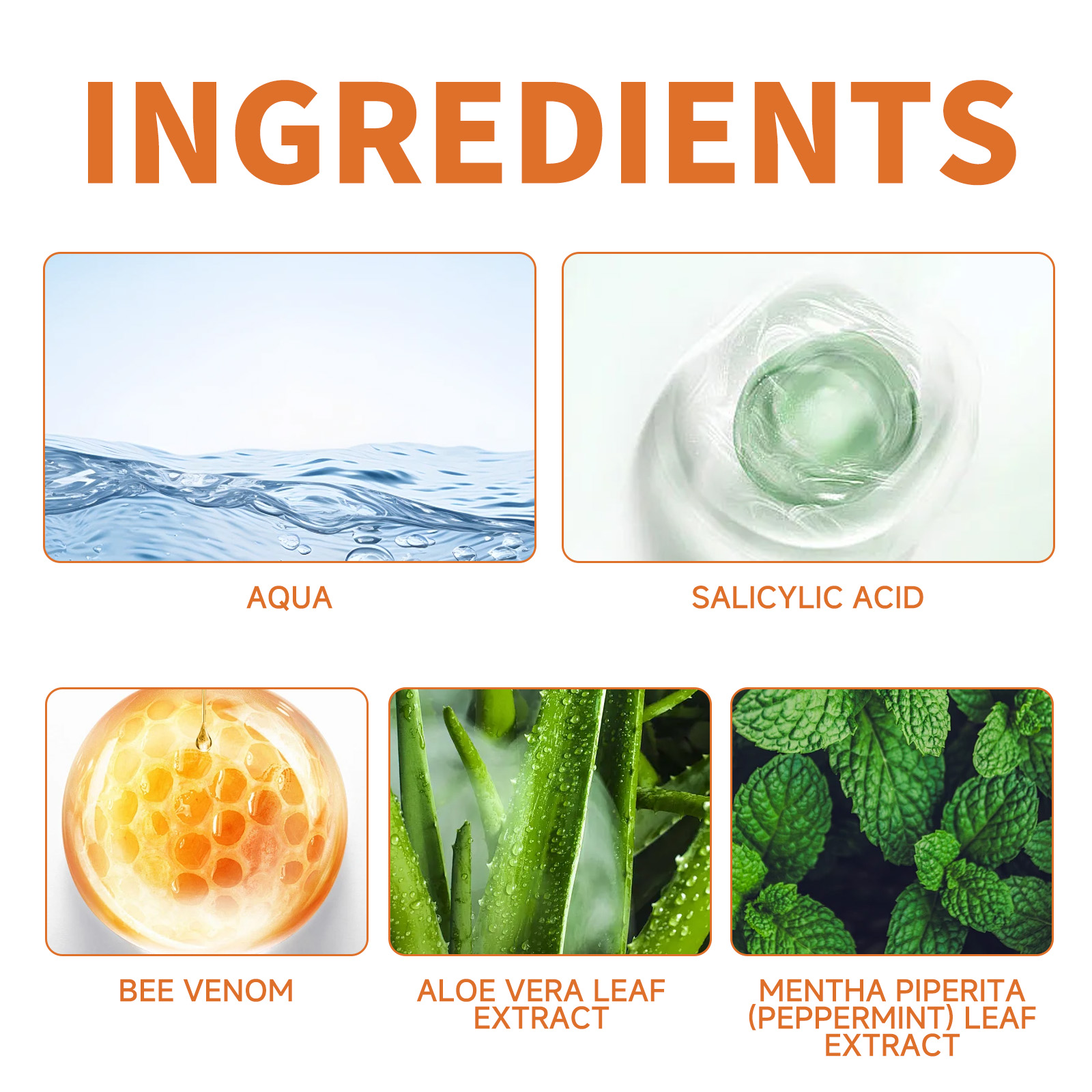 | 成分 | 水杨酸,蜂毒,芦荟叶提取物 |