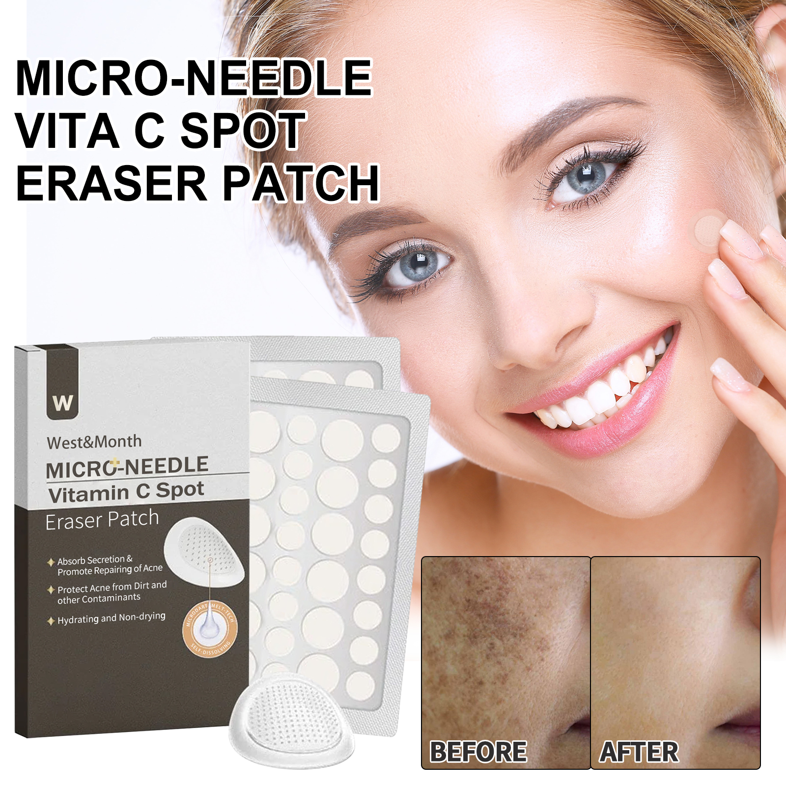 West&Month Micro-needle Vita C Spot Eraser Patch, Fade Spots Acne Print Blemishes Cover Spots Repair Patch
