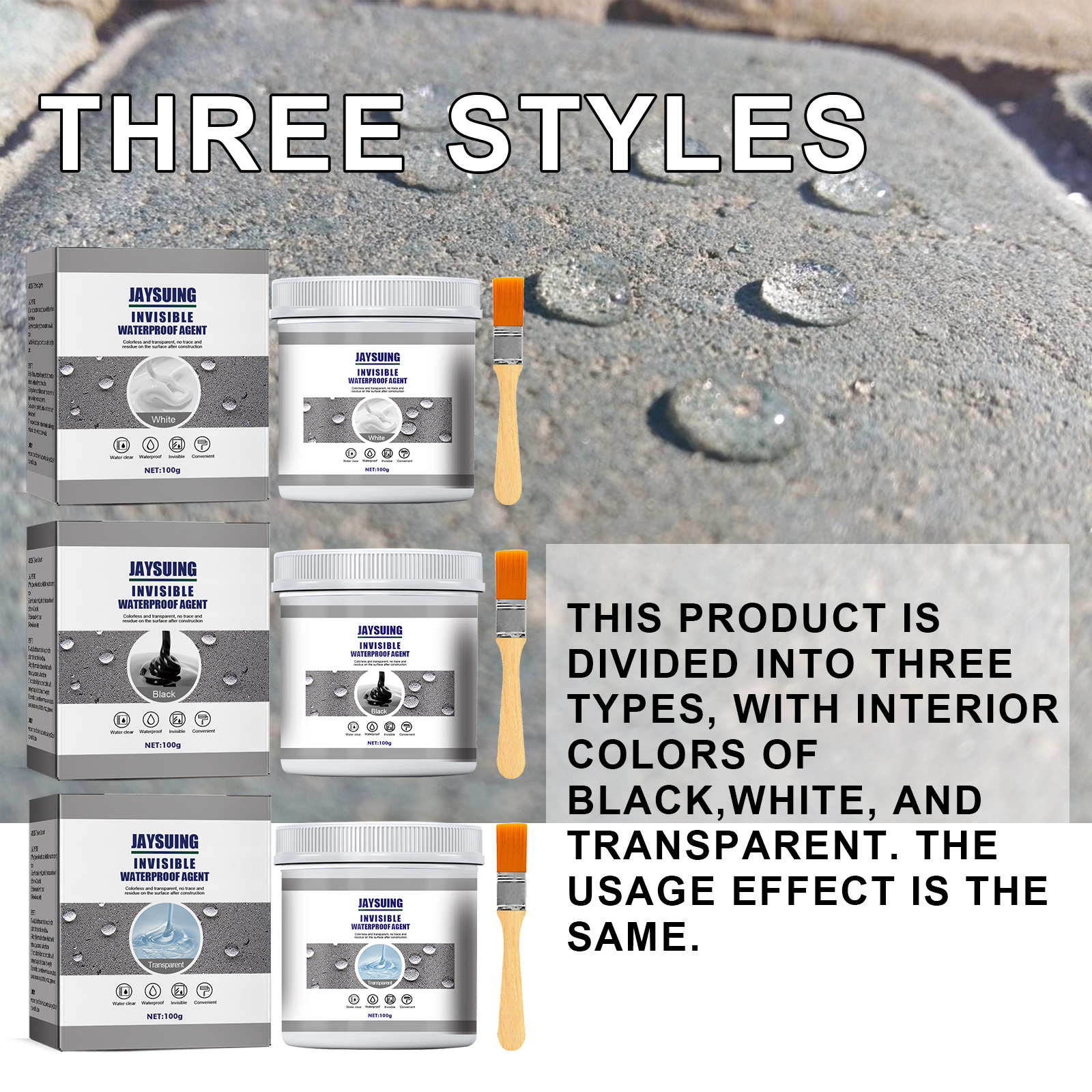 我们的白色防水胶含有二丁酯、氯化钠。它可以防水、防霉,即能穿透破裂区域,然后在表面形成防水层。它的使用方法很简单:清洁施工表面,确保表面无潮气,用毛刷将本品直接涂抹于施工区域步骤,等待24小时晾干,在此期间不要接触水,形成防水层后,水就不会渗入。并且可以防水。