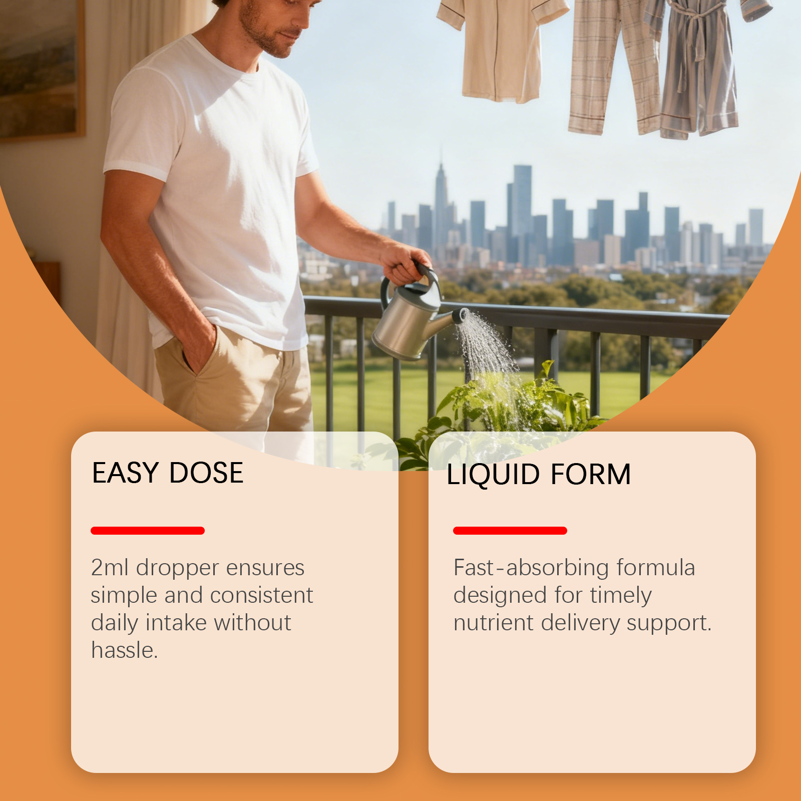 我们的小檗碱液体滴剂,由小檗碱盐酸盐、绿咖啡豆精心调配而成。专为作为日常摄入的一部分,支持代谢健康设计。使用方法极为便捷:每天服用2毫升,可以直接服用或与食物混合。并且它具有快速吸收配方,专为及时营养输送支持而设计。