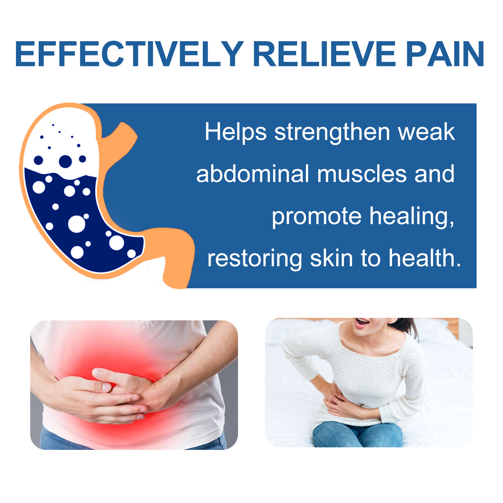 我们的疼痛缓解修复霜含有薄荷叶提取物,蛇床子提取物,苦参根提取物。它可以通过促进受影响组织的愈合,帮助减轻疼痛和缓解不适。它的使用方法很简单:使用前清洁并擦干受影响区域,取一个适当本品并将其应用于受影响的区域,轻轻按摩至完全吸收即可。可以帮助加强腹部肌肉,促进愈合,恢复皮肤健康。