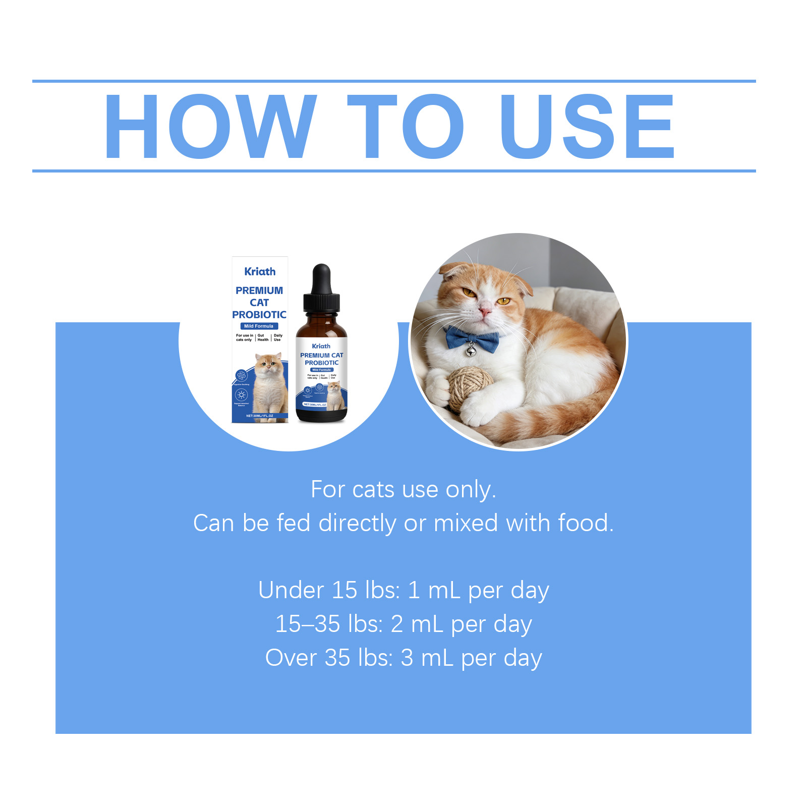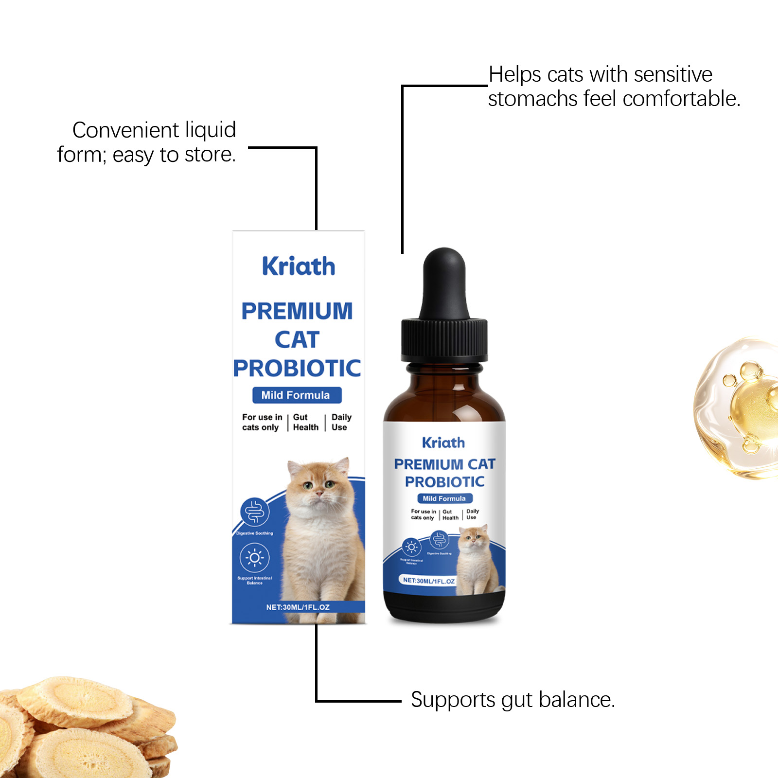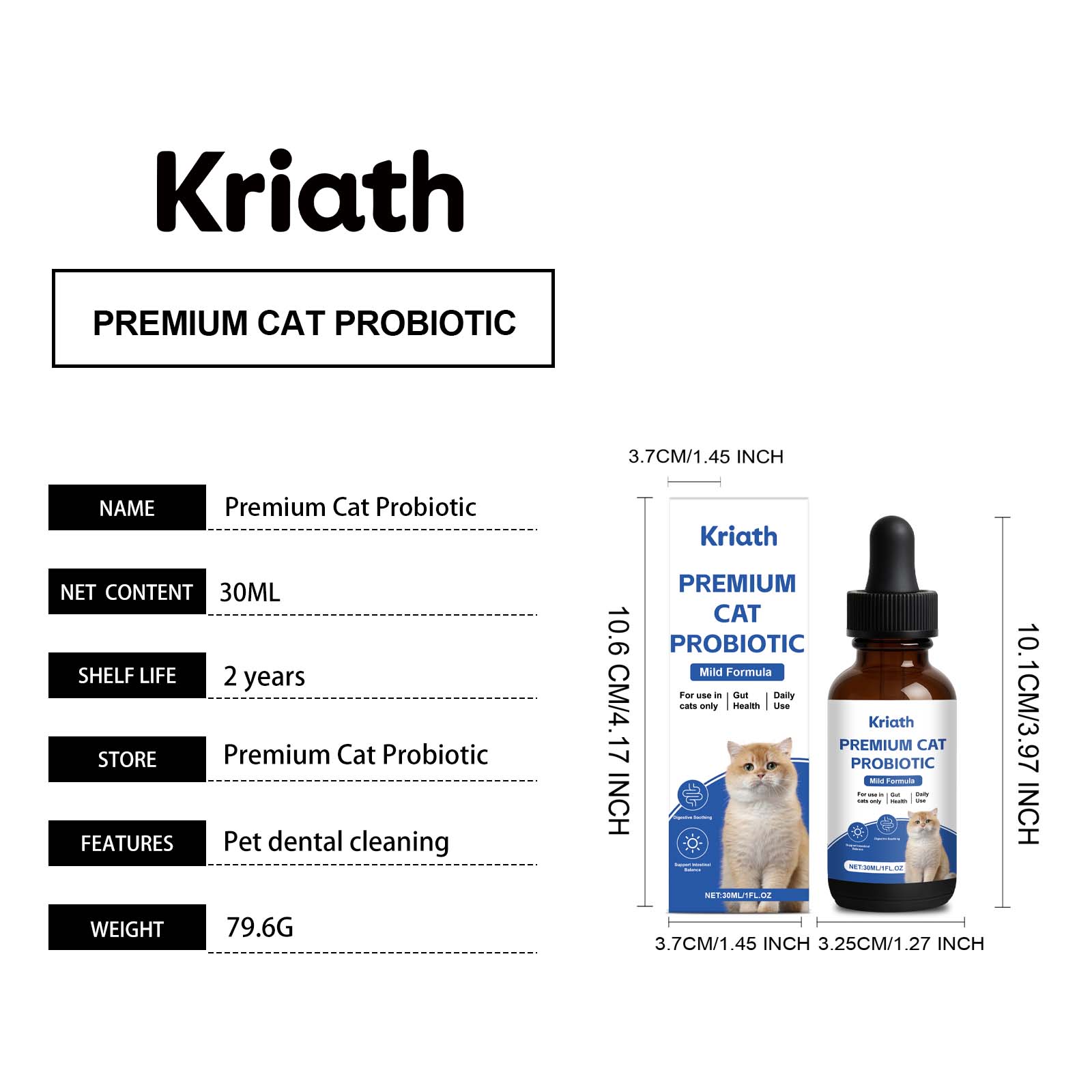 Kriath Cat Probiotic Drops - Gentle Ingredients To Care For Cats Of All Ages, Suitable For Daily Physical Maintenance.