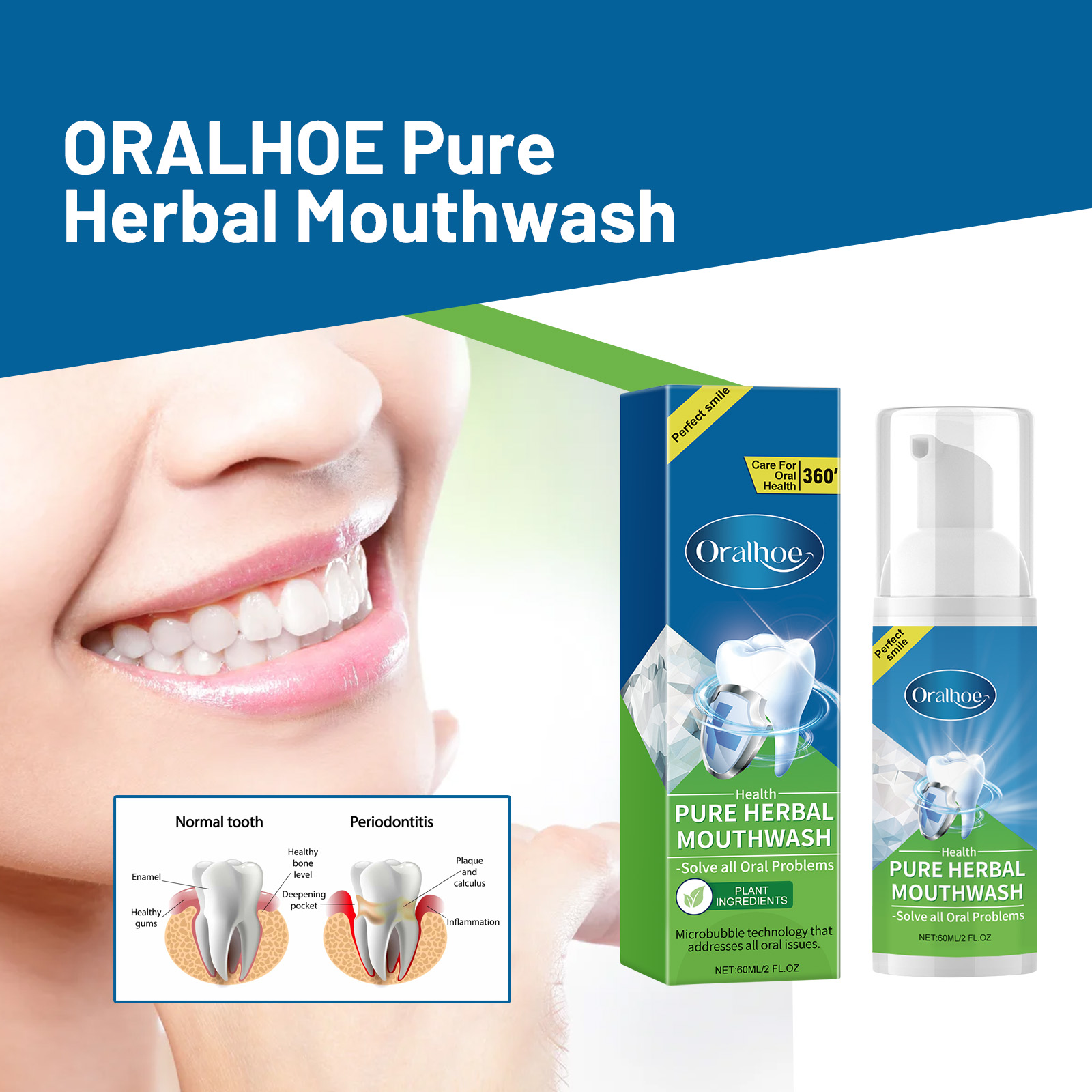 Oralhoe Pure Herbal Mouthwash, Teeth Cleaning Odors Teeth Yellow Stains Tartar Beauty Dental Care