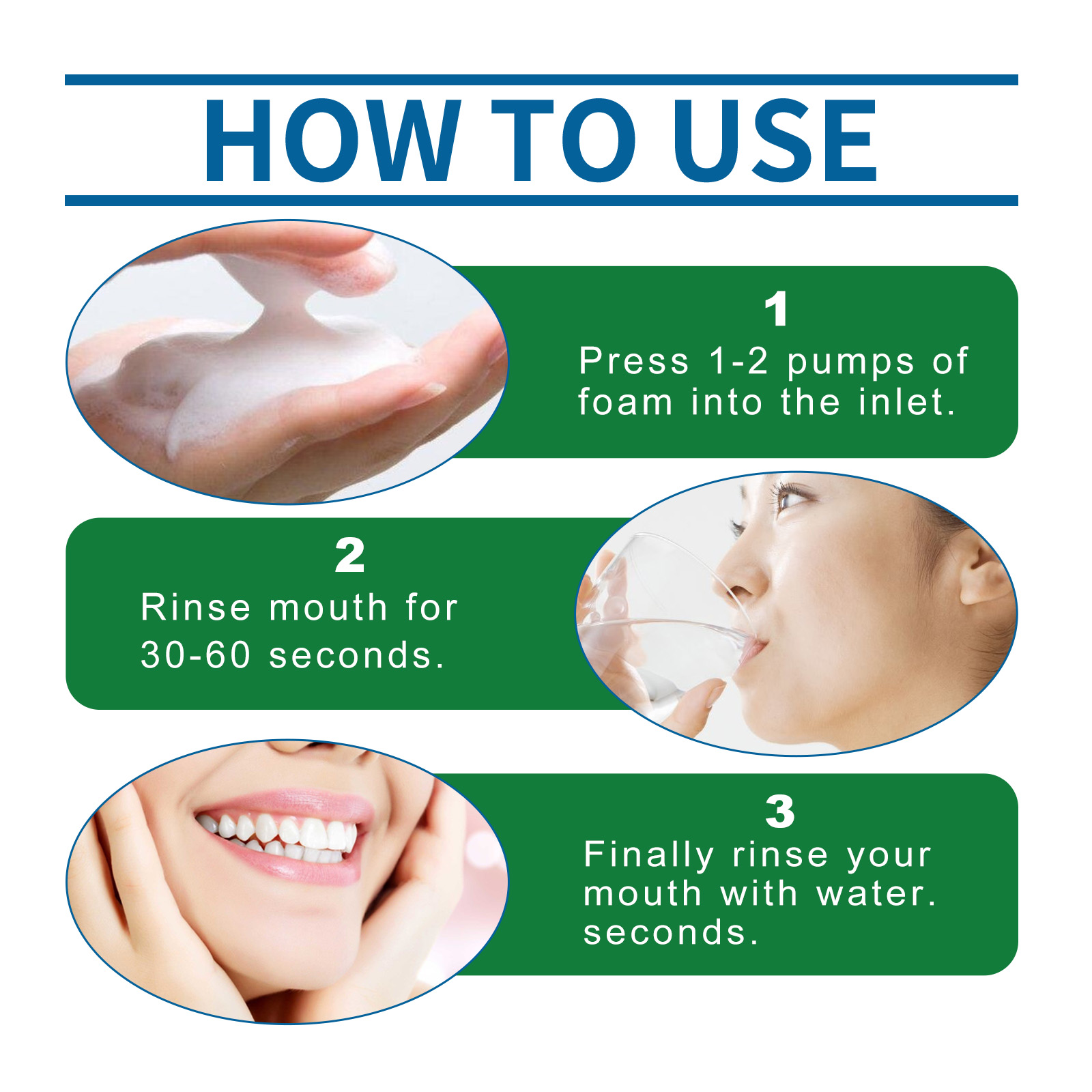 我们的草本口腔慕斯含有甘油,透明质酸,抗坏血酸。它可以清除牙菌斑和牙垢,消除口臭,使口腔清新洁净,缓解牙龈炎和牙周炎,缓解牙痛不适,让您的生活更舒适。它的使用方法很简单:将1-2泵的泡沫压入口中,漱口30-60秒,最后用清水漱口即可。几秒可以预防蛀牙,促进牙本质的修复,让您长期保持口腔健康。