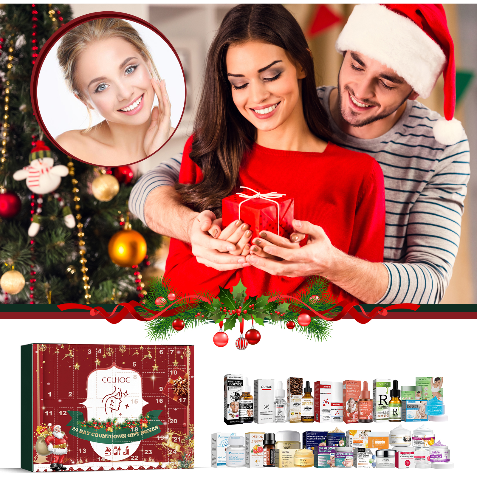 EELHOE Christmas Beauty Blind Box, 24 Cells Beauty Skin Care Surprise Blind Box Moisturizing Moisturizing Whitening Skin