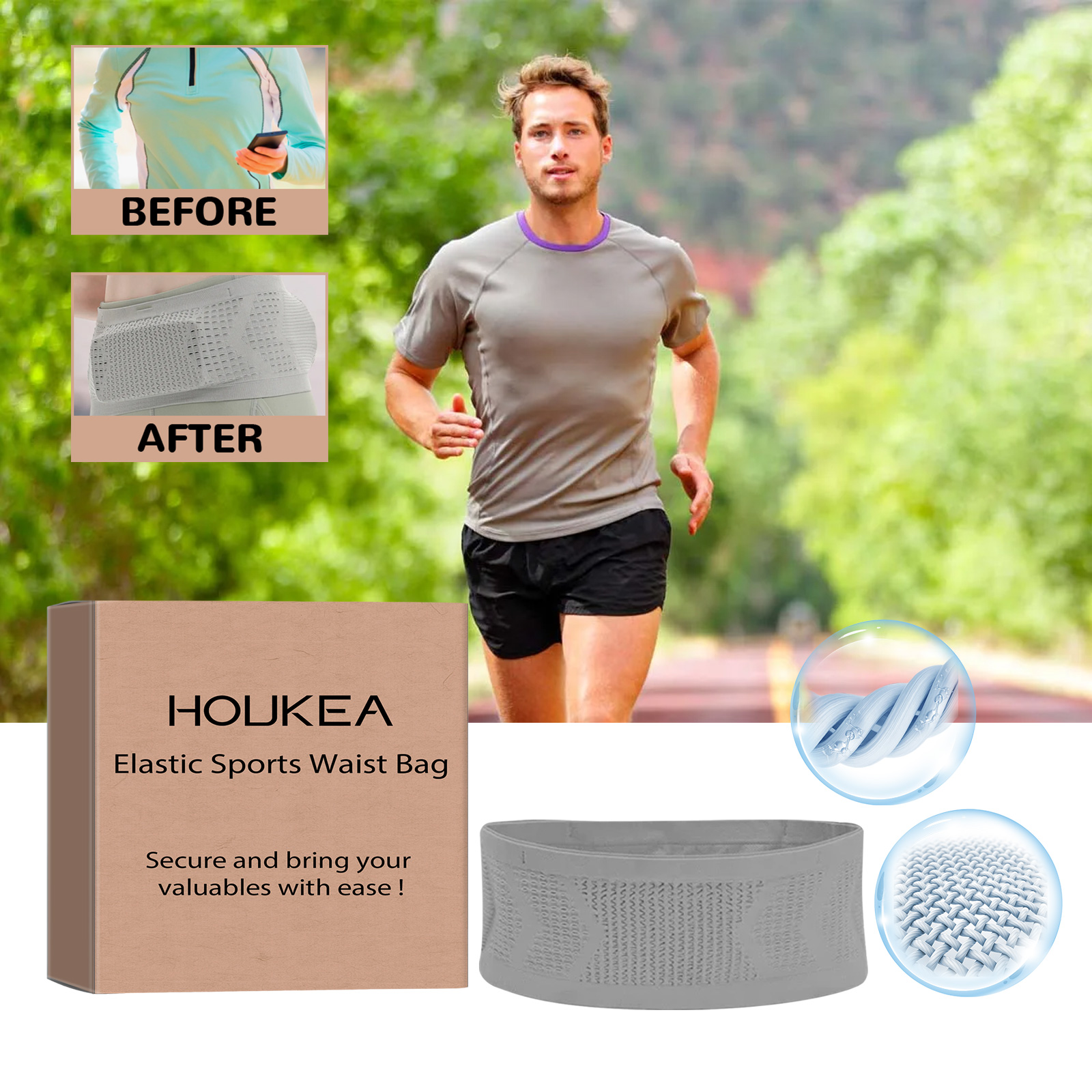 Houkea Elastic Sports Waist Bag, Outdoor Sports Cycling Fitness Non-Slip Breathable Large Capacity Multi-Functional Fanny Pack