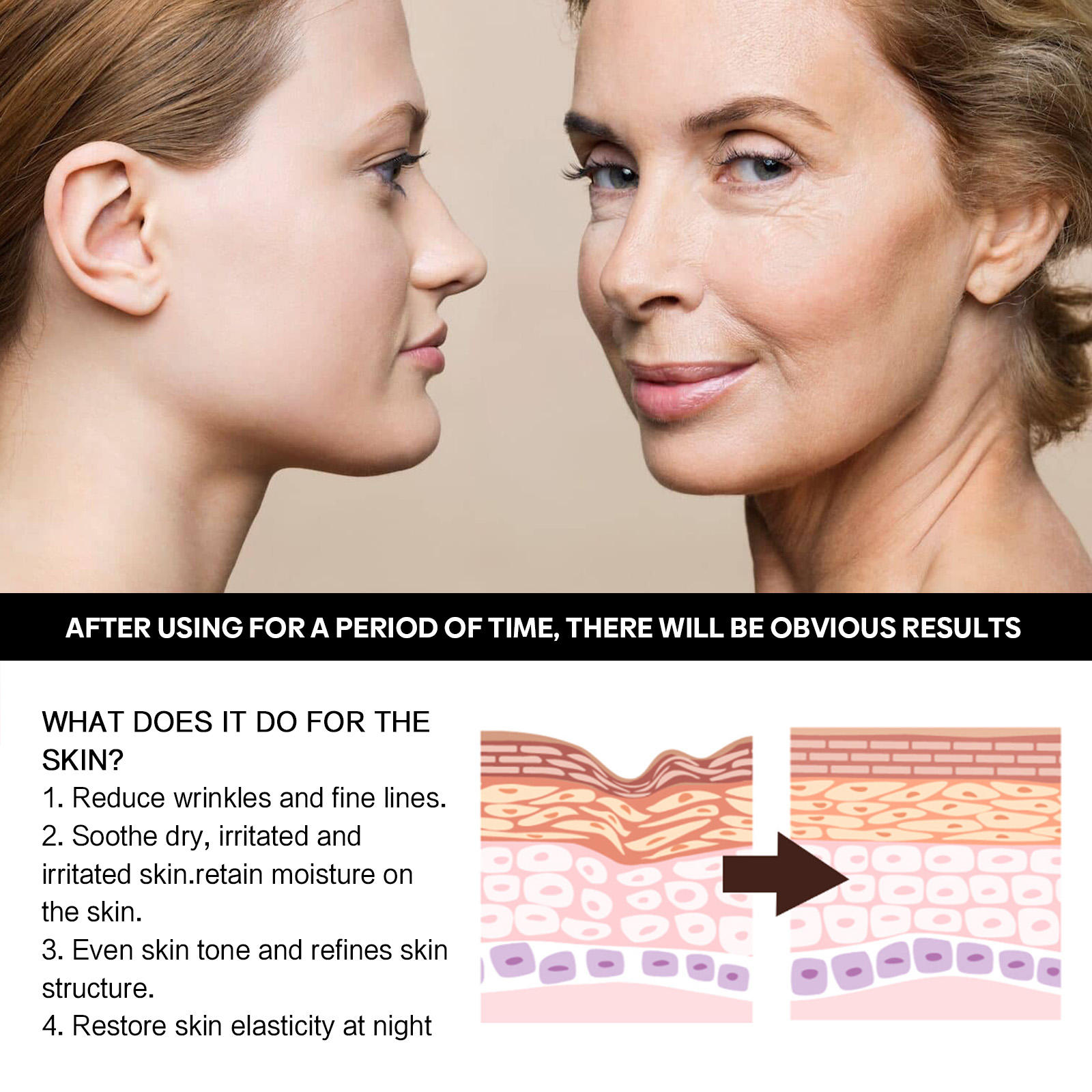 我们的保湿面霜含有芦荟提取物、烟酰胺、视黄醇。它可以有效抚平、滋养、滋润皱纹、干燥等干燥、老化肌肤症状,帮助肌肤保持年轻、柔软、均衡,改善肤色、脱水、成熟的老化肌肤,深层补水保湿。它的使用方法很简单:洁面爽肤后,取适量面霜均匀涂抹于面部肌肤,用手轻轻打圈按摩至吸收。抚平皱纹,改善肤色,令肌肤如丝般光滑,容光焕发。