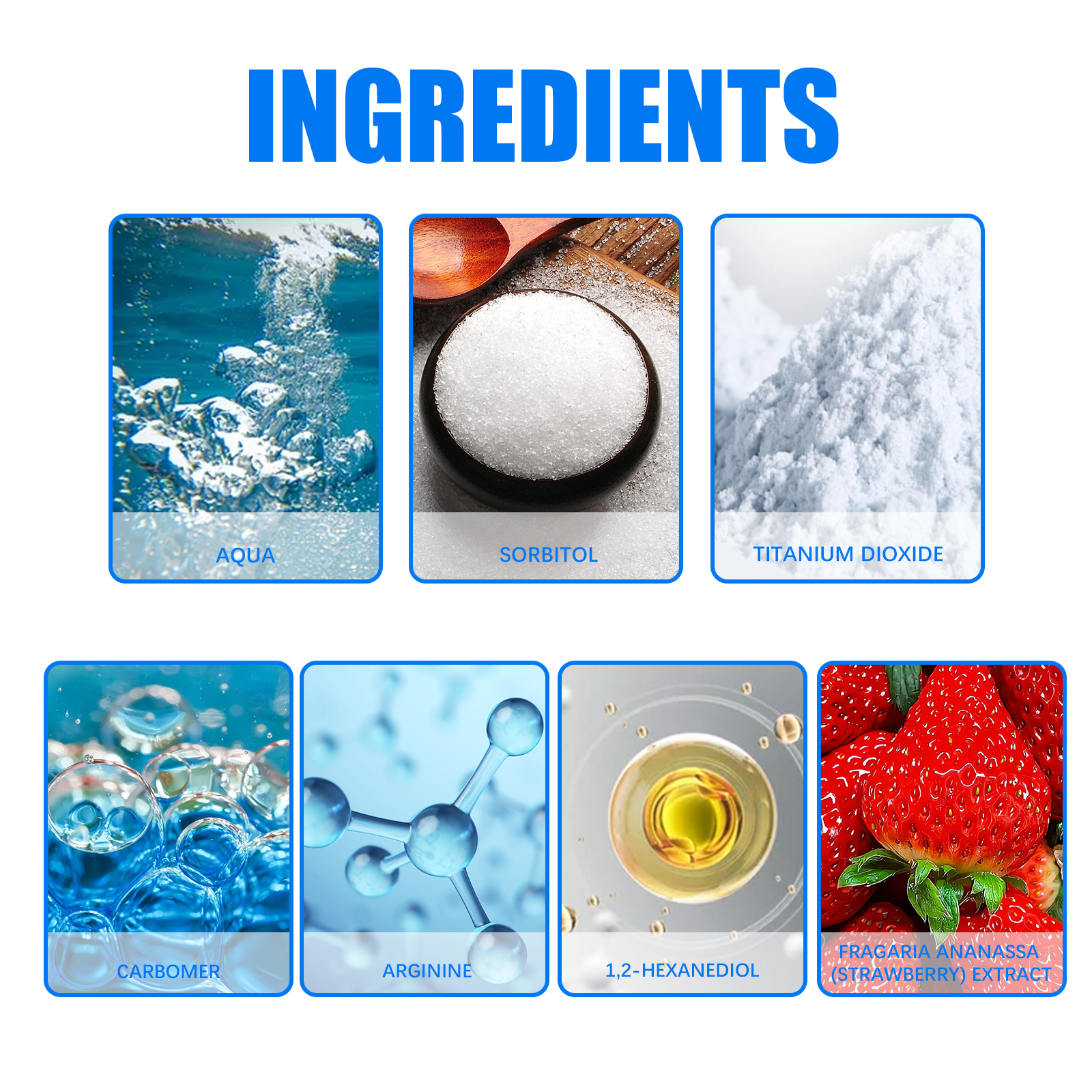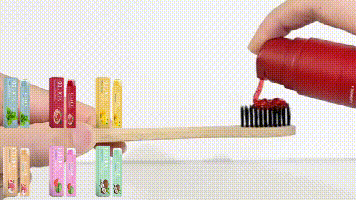 我们的水果味美白牙膏(红丝绒味)含有山梨(糖)醇、二氧化钛。它可以去除牙渍,清新口气,成份安全温和,适合所有人,包括牙齿敏感的人。它的使用方法很简单:取适量牙膏在牙刷上,用正确的方法刷2-3分钟,用水漱口。并且可以洁白牙齿。