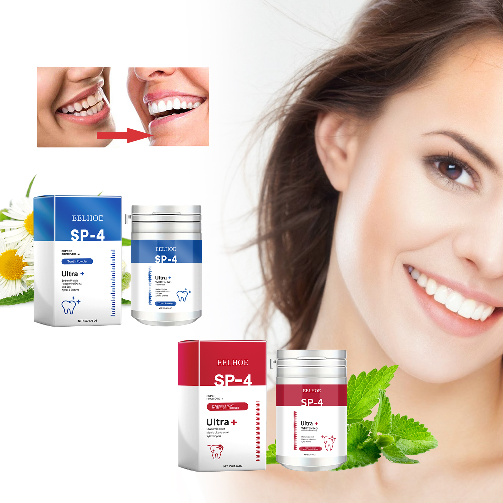 EELHOE Fresh Breath Tooth Powder, Teeth Cleaning Yellow Teeth Stain Removal Tartar Beauty Whitening Oral Care