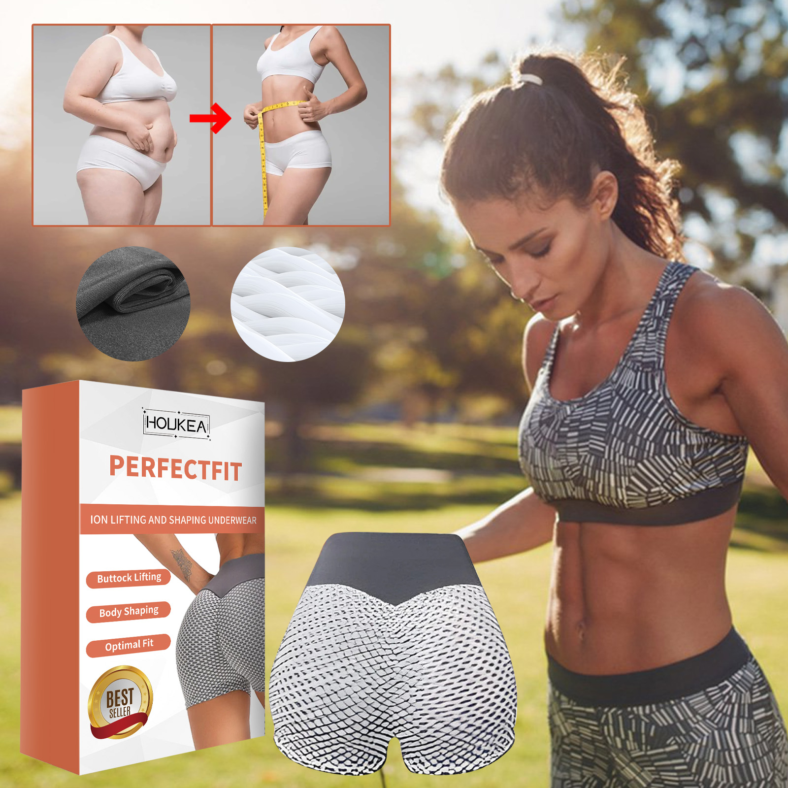 Houkea Ion Lift Shaped Underwear, Sports Fitness High Stretch Fabric Breathable Anti-Wear Leg Leg Shape Underwear