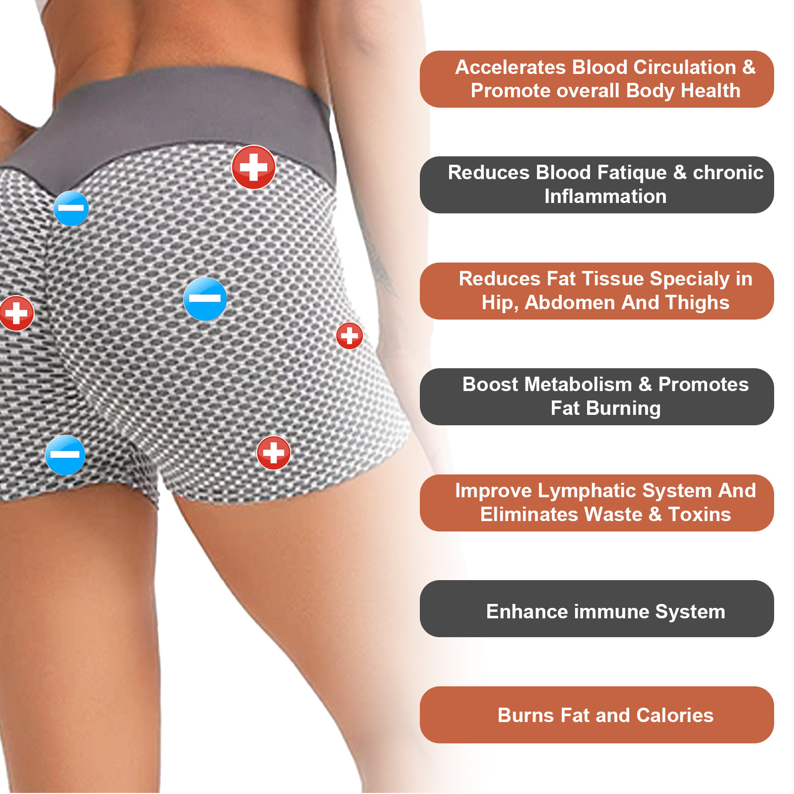 我们的离子提升塑形内裤含有氨纶,聚酯纤维。它可以帮助减少肿大的淋巴结,帮助身体燃烧多余的脂肪,使身体更苗条。它的使用方法很简单:直接穿在身上,清洗时,使用合适的水温,使用温和的洗涤剂,手洗温和。并且可以减肥和减肥。