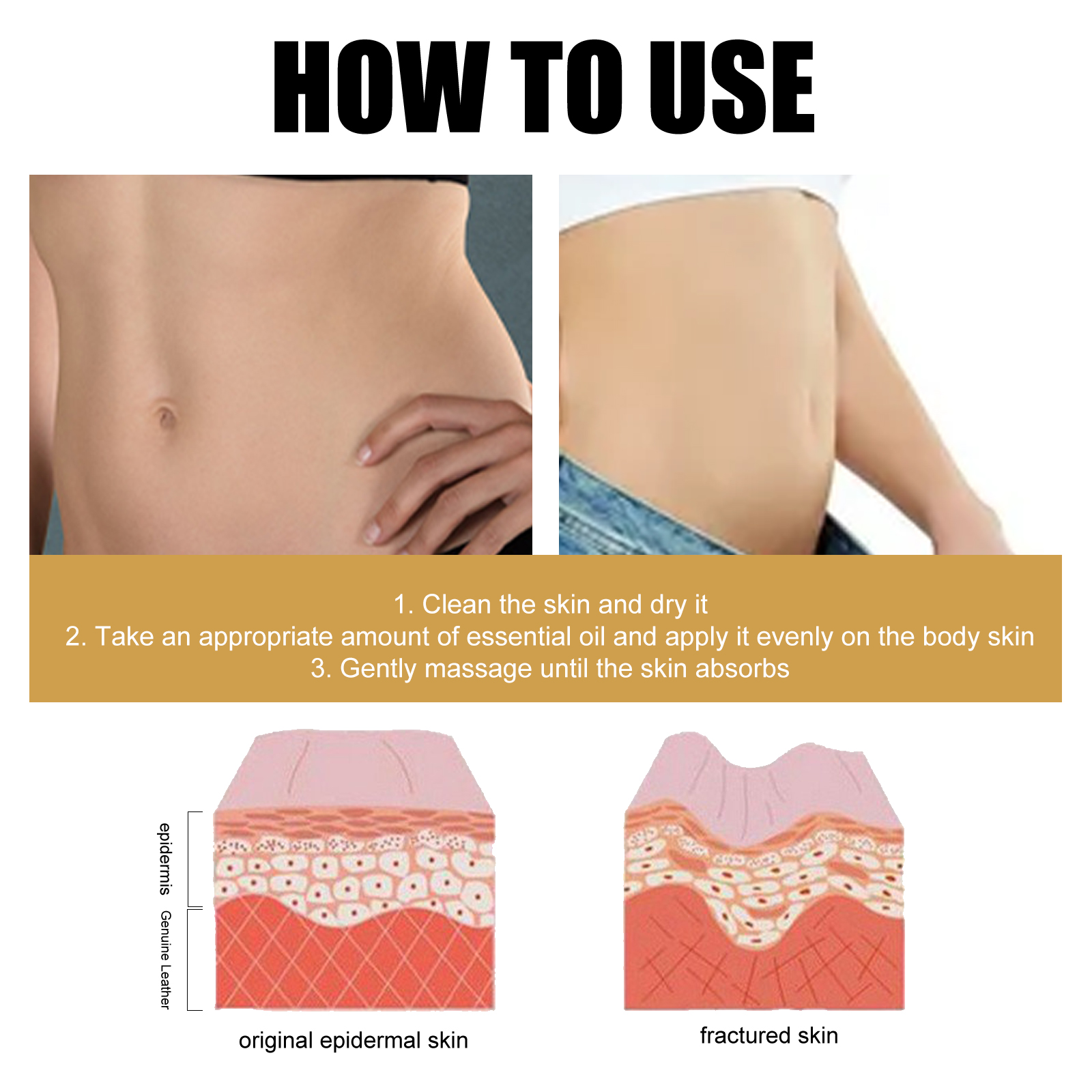 我们的紧致胶原蛋白油含有透明质酸、胶原、辣木油。它可以改善你的皮肤质地,还有助于提高水分和弹性,同时减少橘皮组织的出现。它的使用方法很简单:首先清洁皮肤并擦干,取适量精油均匀涂抹在身体皮肤上,之后轻轻按摩,直到皮肤吸收,有助于加速新陈代谢,消除老化脂肪细胞,防止脂肪堆积,改善皮肤微结构,滋养肌肤,使肌肤光滑柔软。