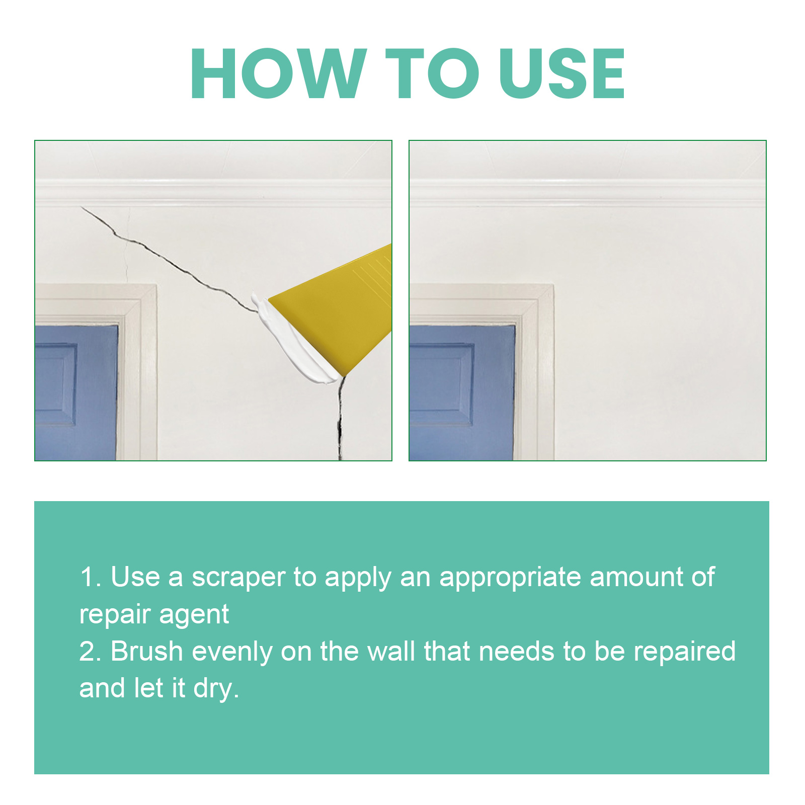 我们的墙壁修复套件含有环氧树脂, 甲基丙烯酸甲酯树脂。它可以帮助你恢复完美无瑕的墙面。它的使用方法很简单:用刮板涂抹适量的修护剂,在需要修补的墙面上均匀刷上,晾干。并且可以修复墙面。