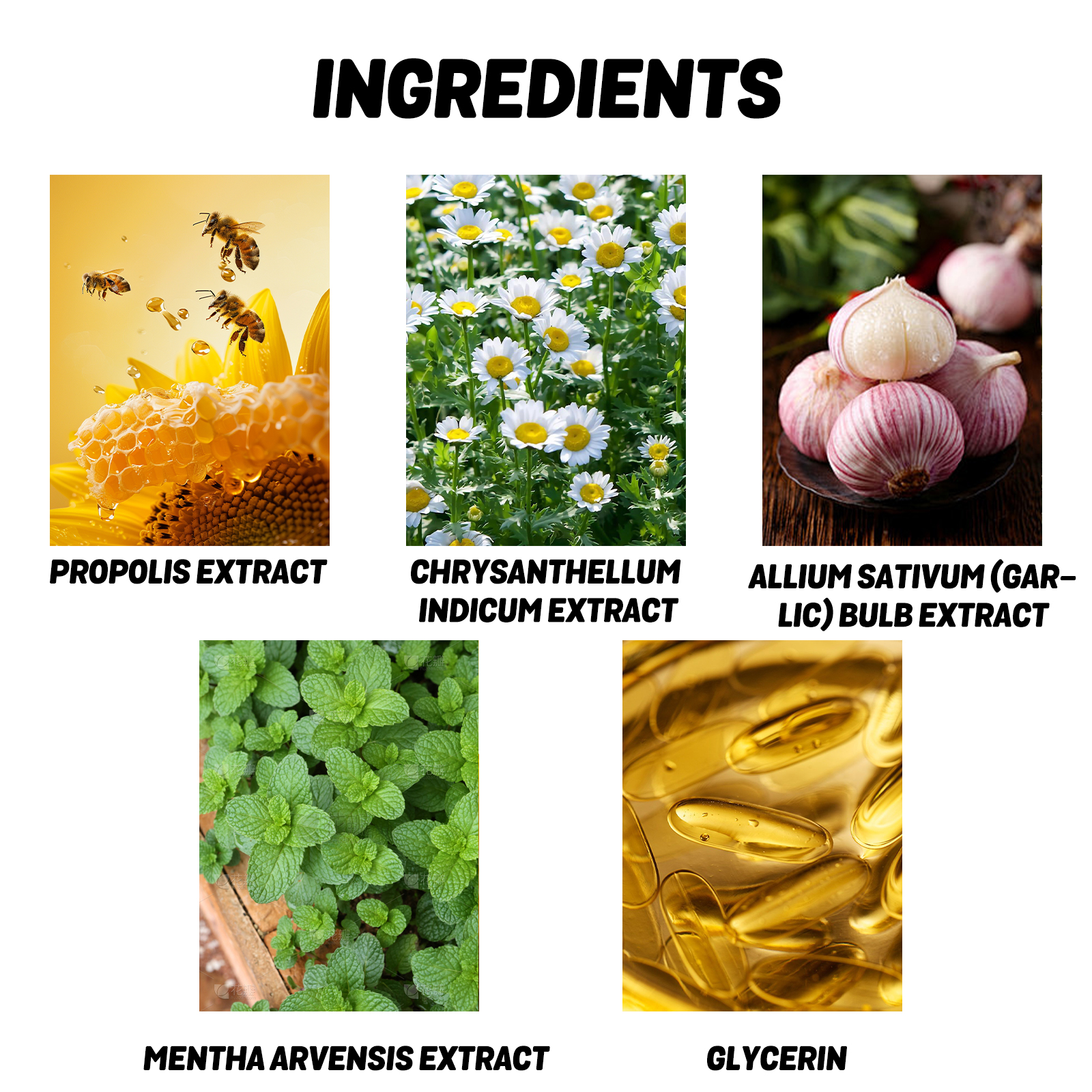 | 成分 | 甘油,蜂胶提取物,菊花提取物 |