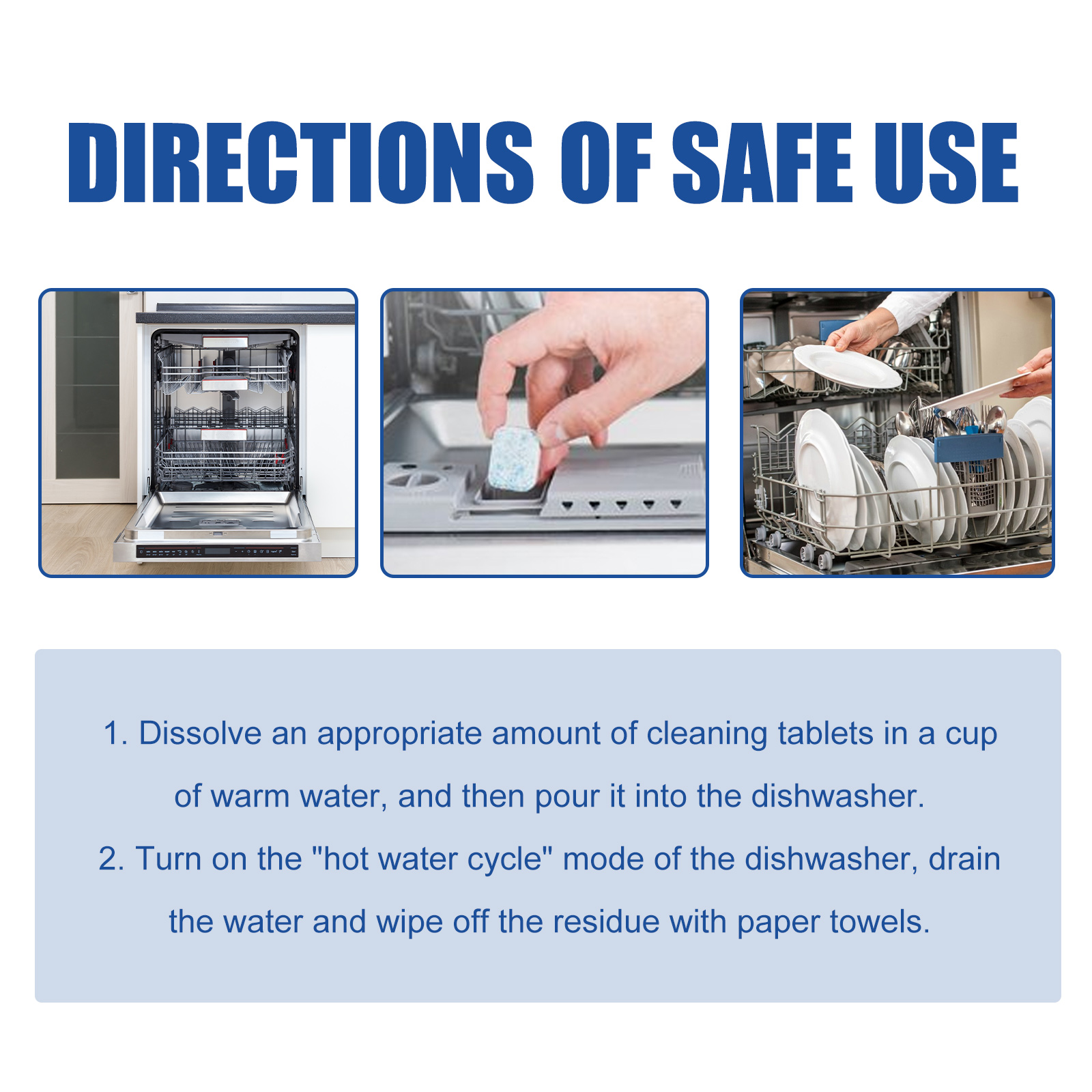我们的洗碗机清洁片含有月桂醇聚醚硫酸酯钠、椰油酰胺丙基甜菜碱。它可以去除洗碗机的异味,保持洗碗机的新鲜,使餐具更干净,更卫生。它的使用方法很简单:将适量的清洁药片溶解在一杯温水中,然后倒入洗碗机,打开洗碗机的“热水循环”模式,沥干水,用纸巾擦去残留物。并且可以清洁油污。