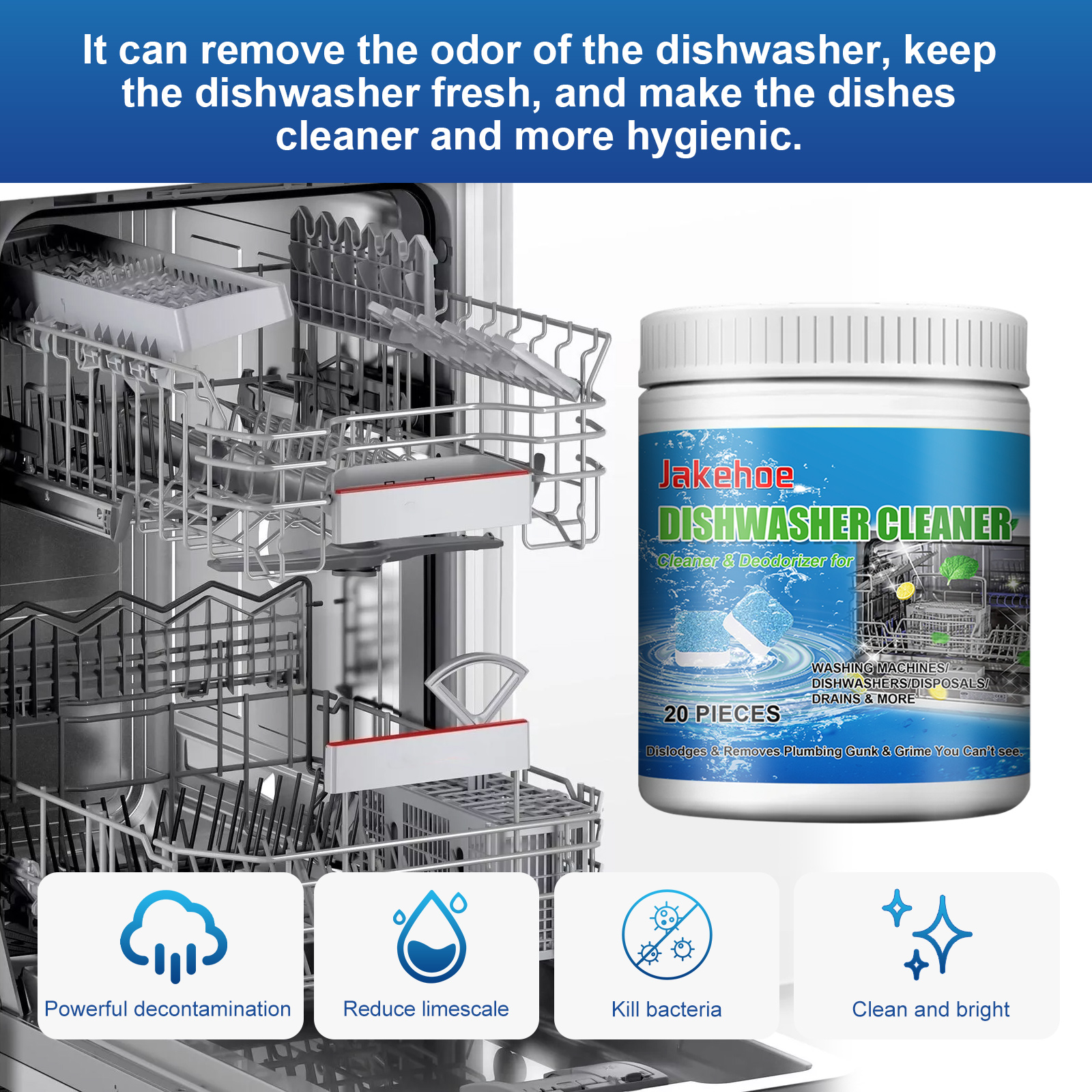 Jakehoe Dishwasher Cleaning Tablet, Kitchenware Decontamination Decontamination Tableware Heavy Oil Cleaning Dish Washing Block Detergent