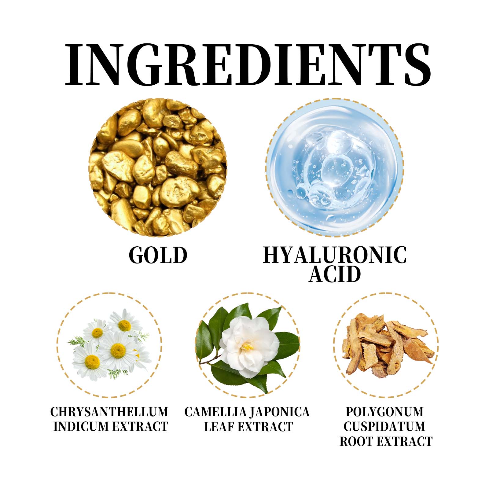 | 成分 | 金箔,菊花提取物,透明质酸 |