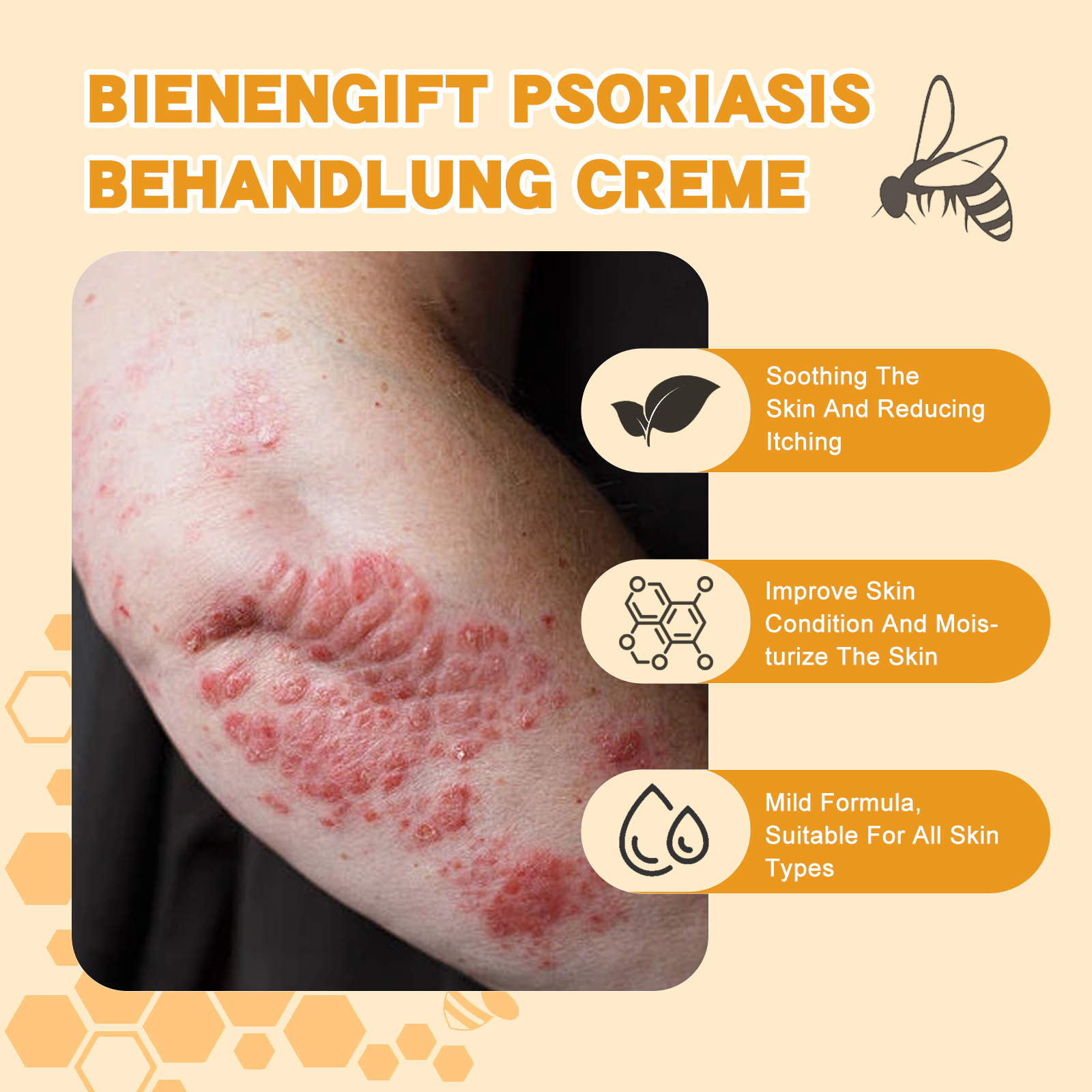 我们的蜂毒皮肤护理霜含有甘油、矿油。它可以迅速舒缓皮肤,减轻瘙痒感,给您带来舒适感,能够持续改善皮肤状态,滋润肌肤,让您长期保持健康肌肤。它的使用方法很简单:清洁并干燥皮肤,取适量产品涂抹在皮肤上,轻轻按摩,等待15分钟直至吸收即可。采用温和的成分配方,适合各种皮肤,让您放心使用。