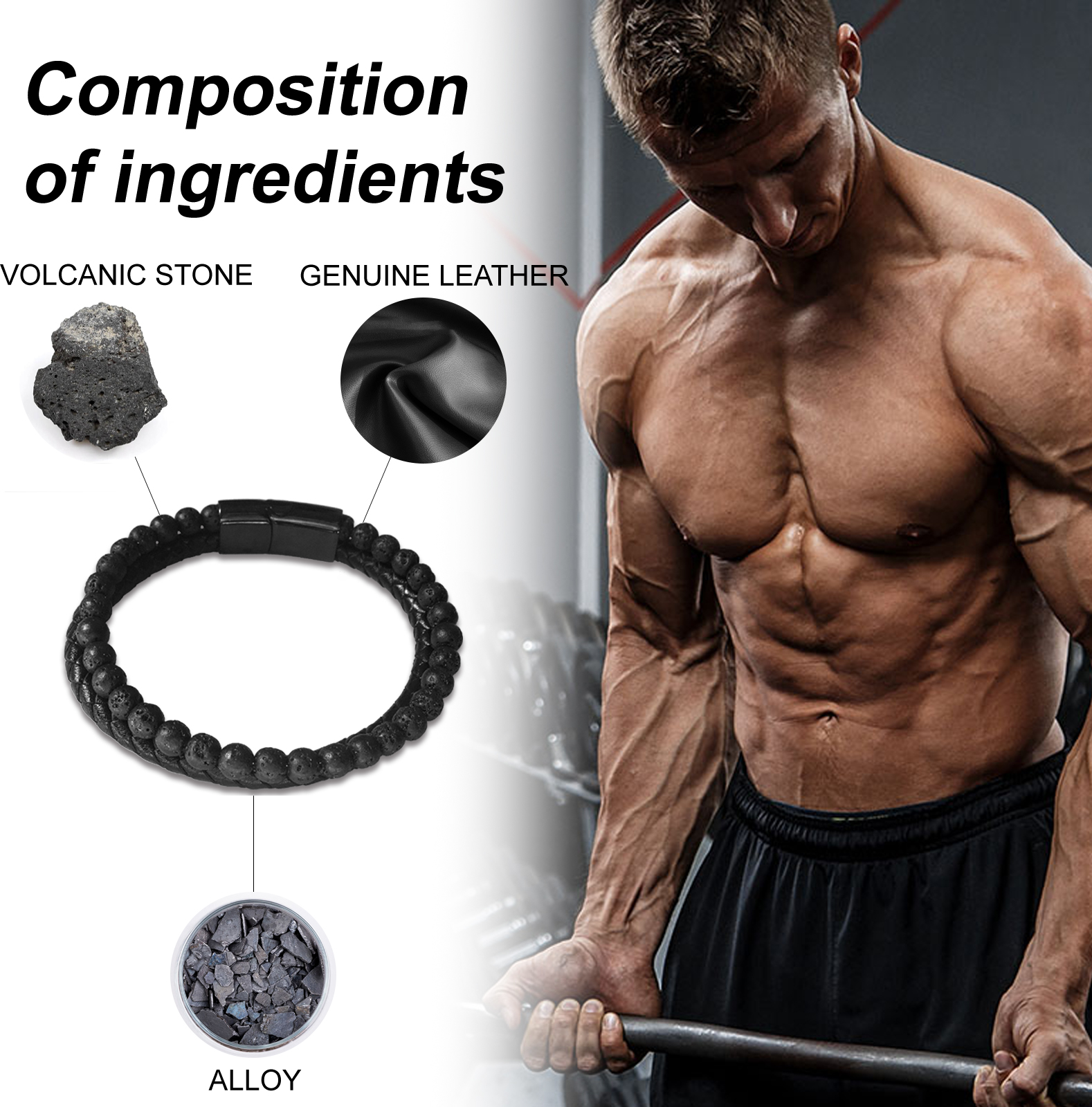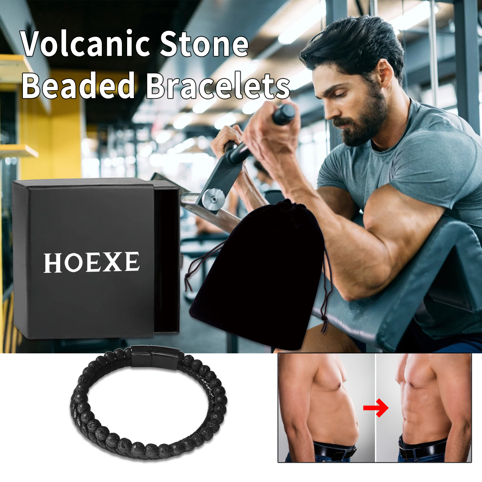 Hoexe Volcanic Stone Beaded Bracelets, Outdoor Sports Bracelet Fashion Accessories Men's Exercise Gym Portable Bracelet