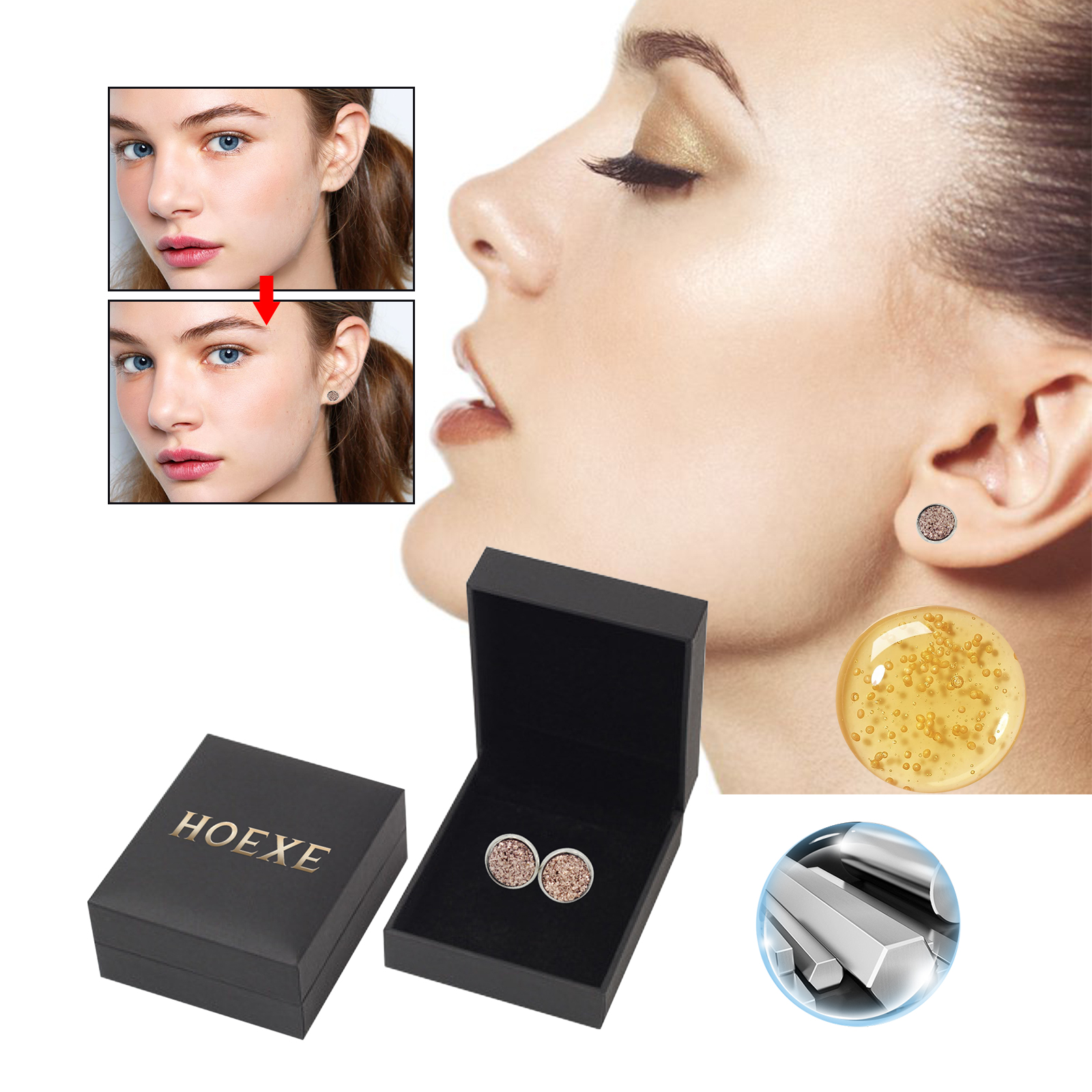 Hoexe Magnetic Earrings, No Piercing Earrings Clear Jawline Lines To Create A Beautiful Figure