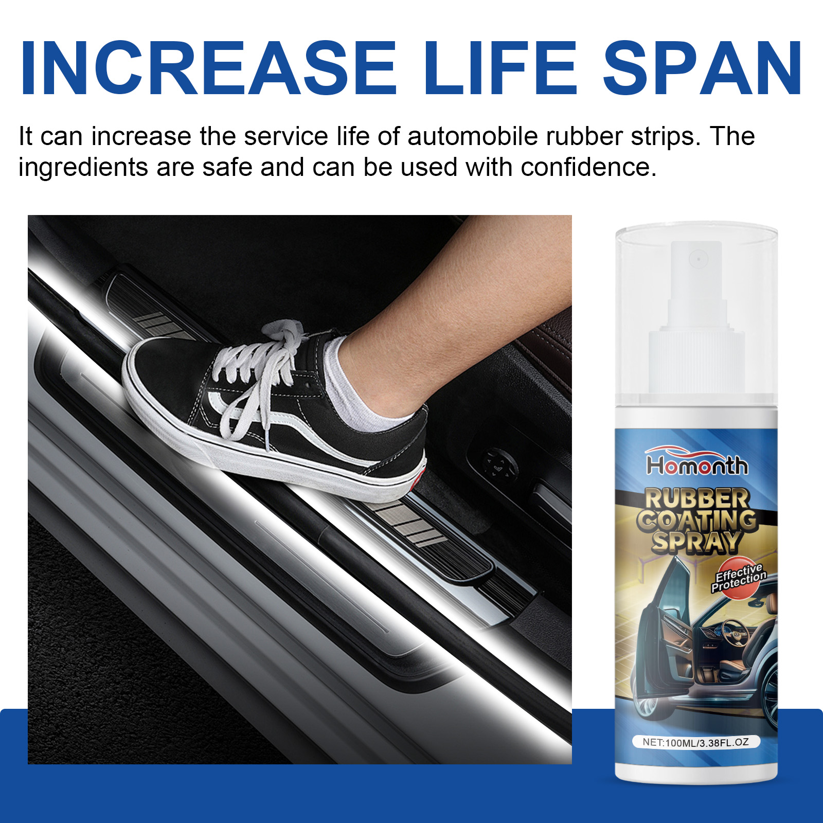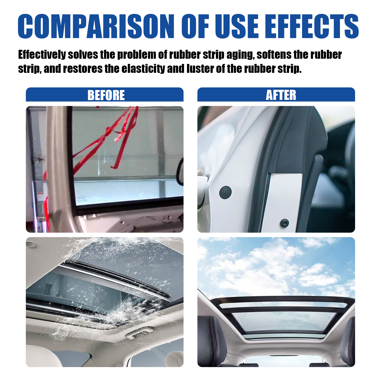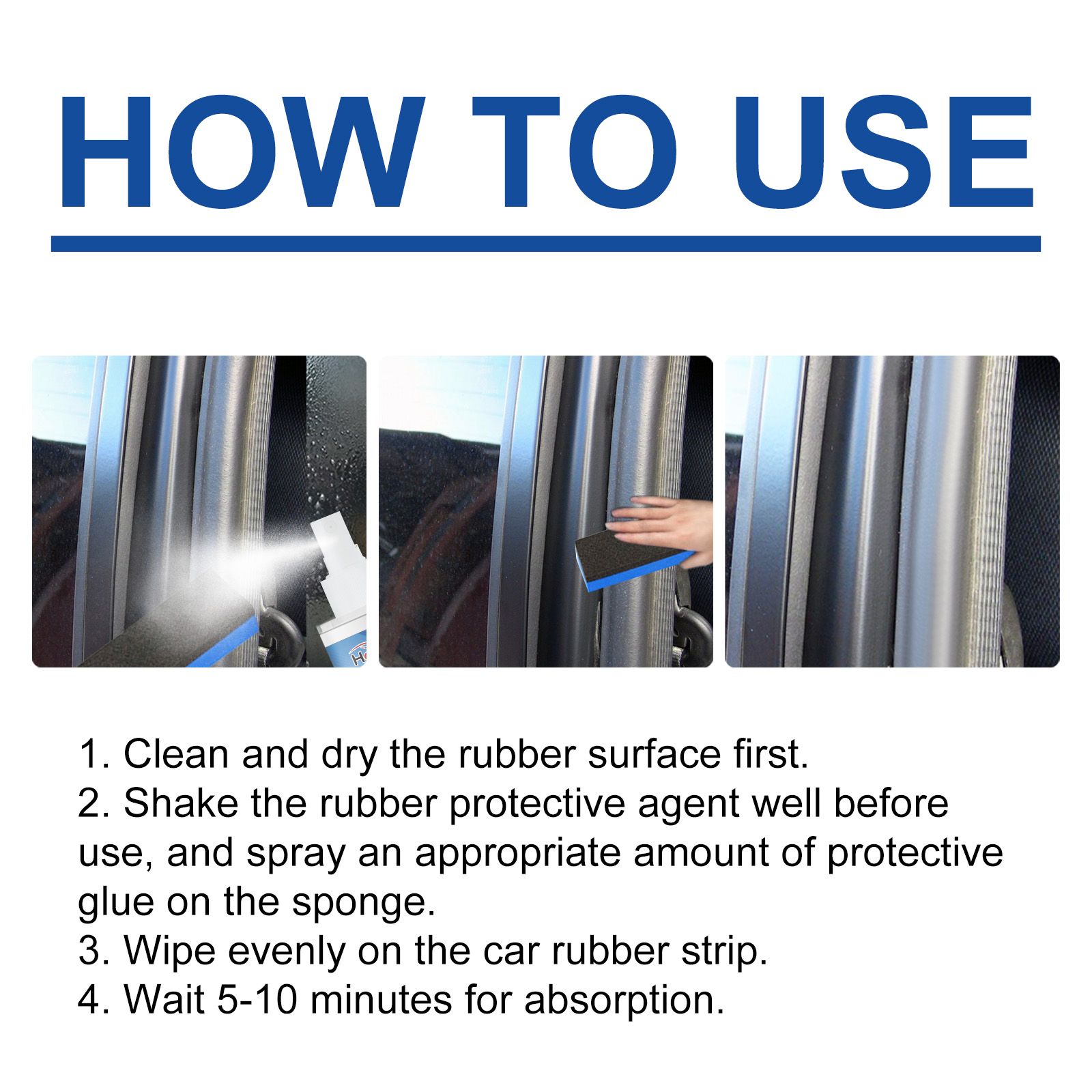 我们的汽车橡胶保护剂含有硅油、矿物油、月桂醇聚醚-7。它可以有效解决胶条老化问题,软化胶条,恢复胶条的弹性和光泽,增加汽车胶条的使用寿命。它的使用方法很简单:首先清洗并干燥橡胶表面,使用前将橡胶保护剂摇匀,并在海绵上喷适量的保护胶,在汽车胶条上均匀擦拭,等待5-10分钟吸收。并且可以翻新清洁橡胶。