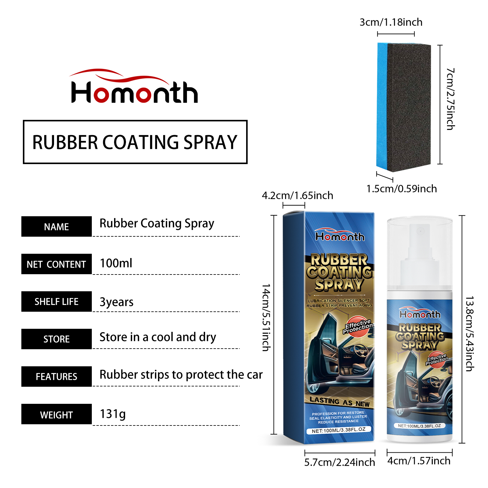 | 产品尺寸 | 喷雾:13.8*4cm,海绵:7*3*1.5cm |