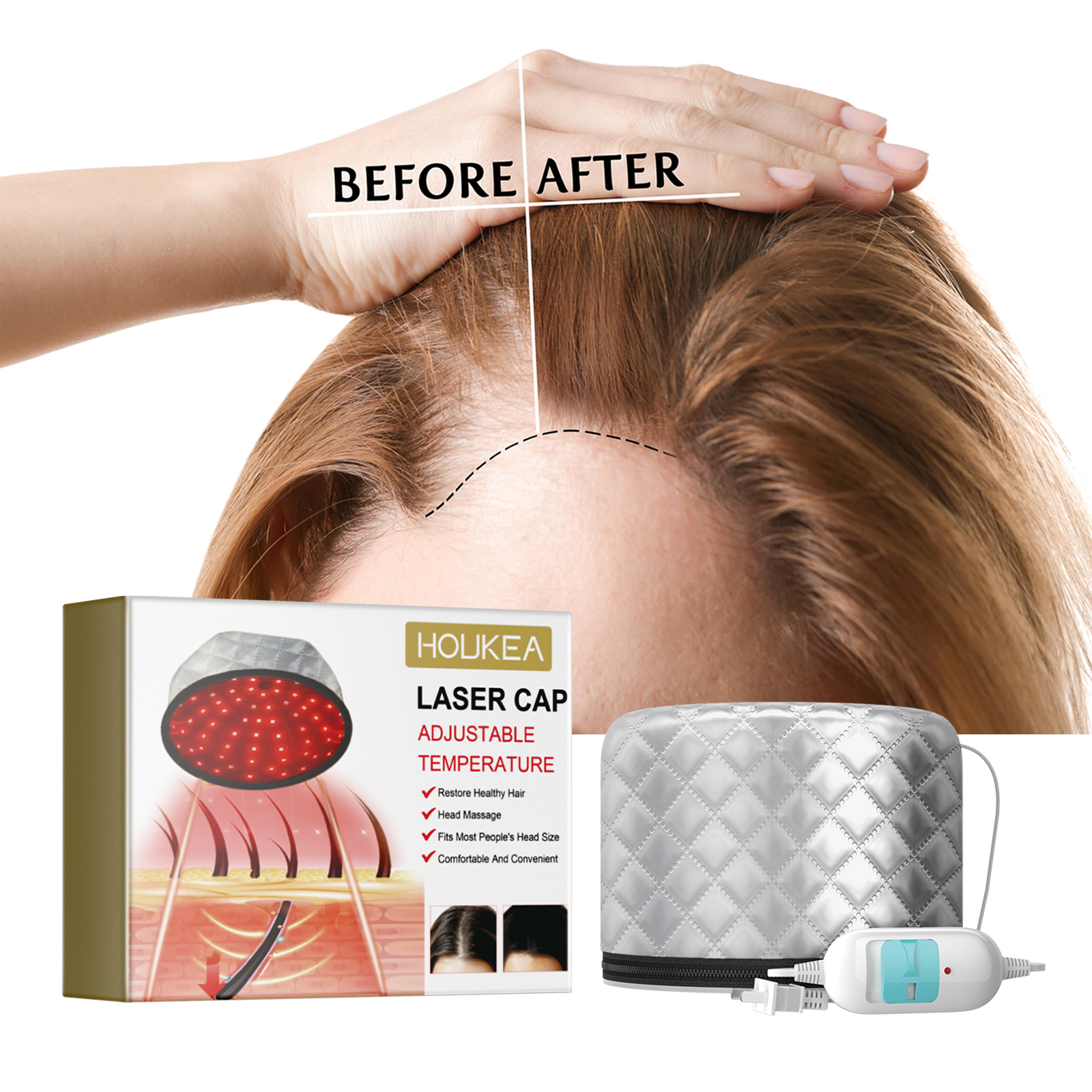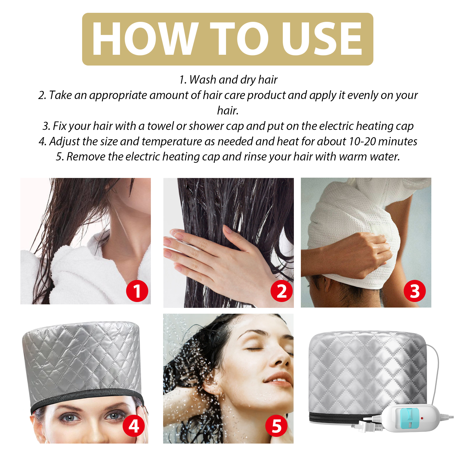 Houkea Electric Heating Cap, Repair Damaged Dry Hair And Irritated Head Massage Hair Care Heating Cap