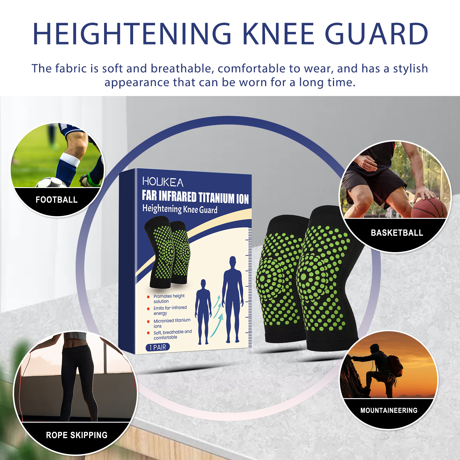 我们的艾草护膝含有艾草提取物。它可以有效增强骨骼健康,帮助增加身高,增强强效骨生长因子。它的使用方法很简单:将双脚放入护膝,将护膝调整到膝关节的位置。并且可以护膝。