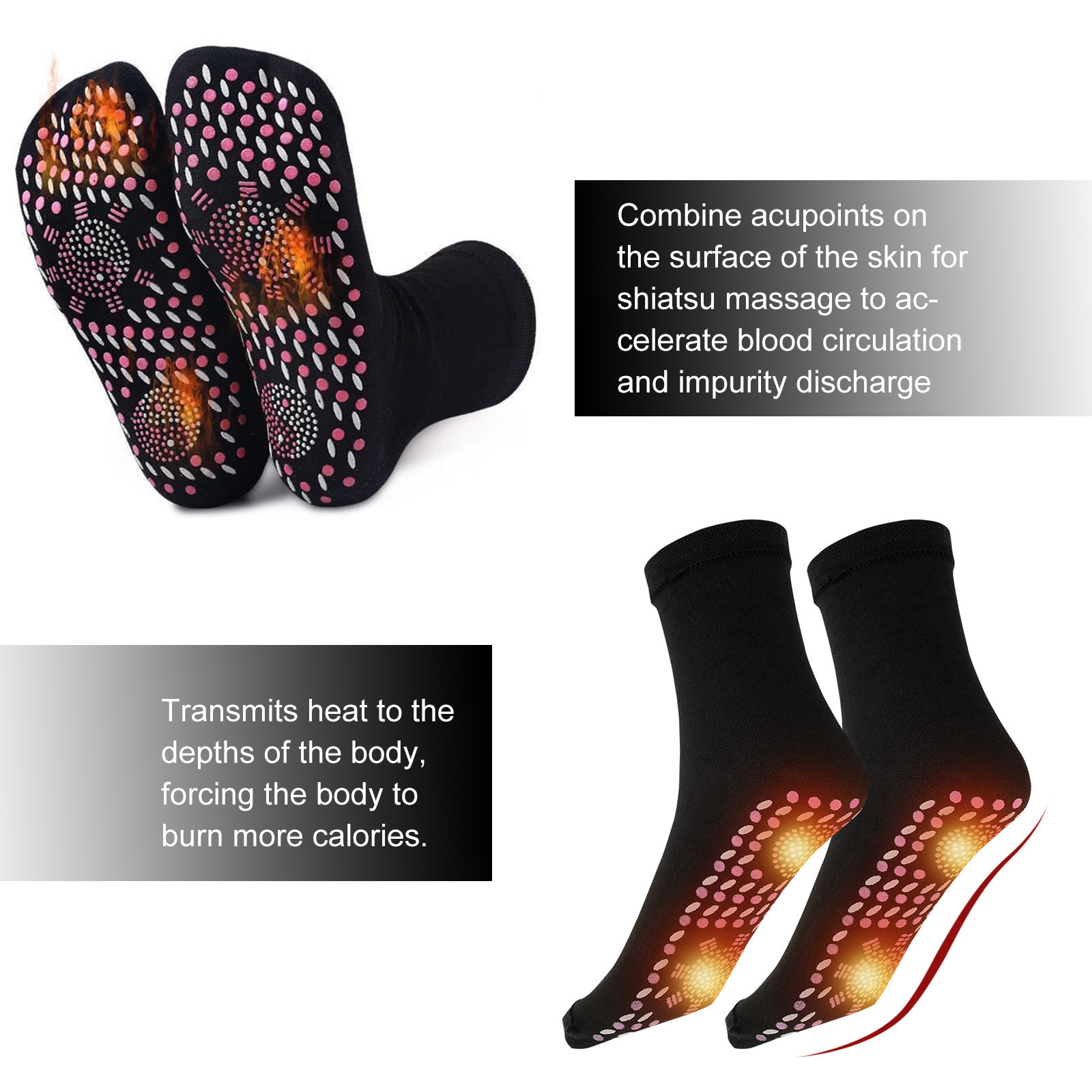 我们的弹力袜含有电气石、羊毛纤维。它可以释放负离子,将热量深入体内,减少脂肪堆积,促进卡路里燃烧。它的使用方法很简单:清洁和干燥脚,将本产品涂在脚上,就像往常一样进行你的日常活动。并且可以护理足部。