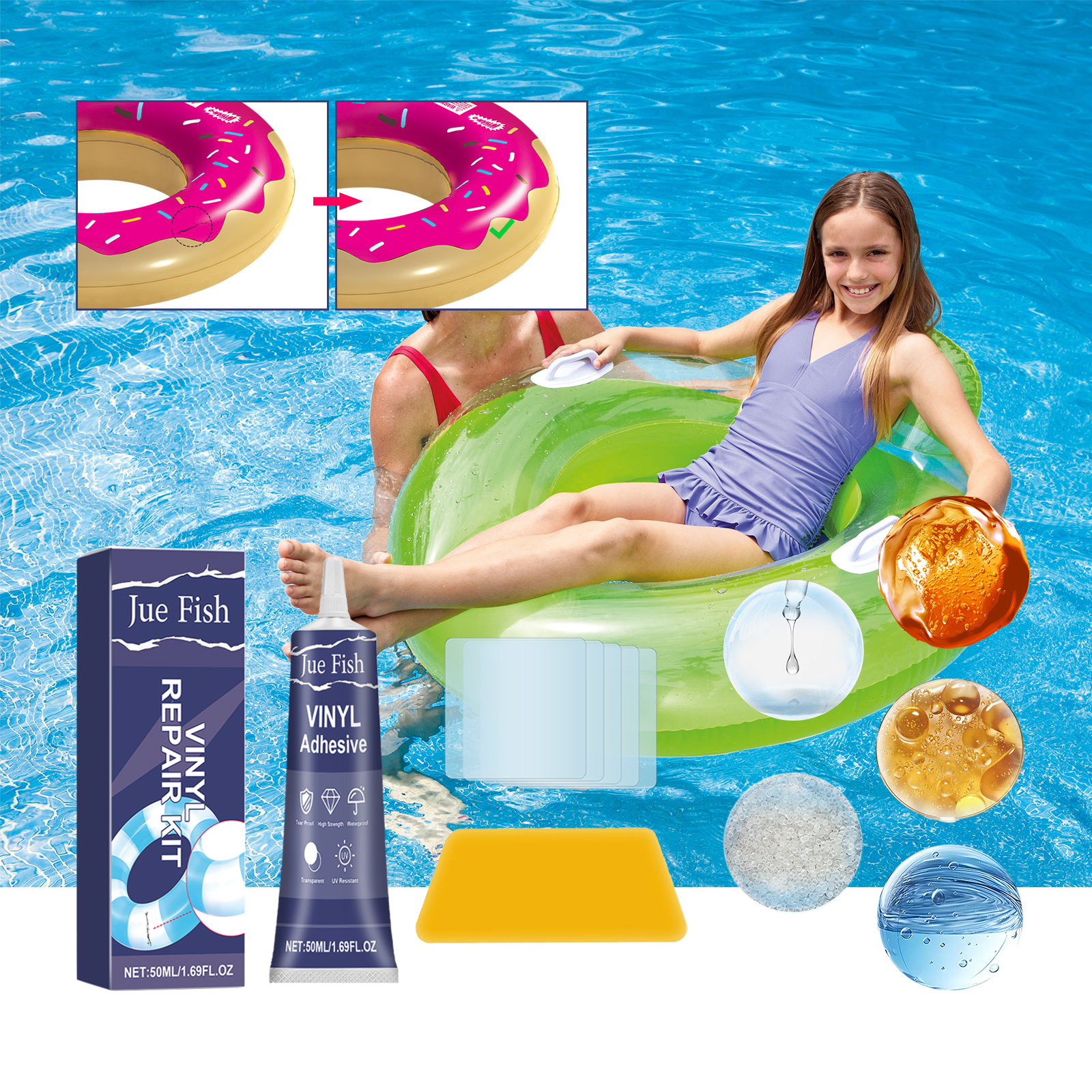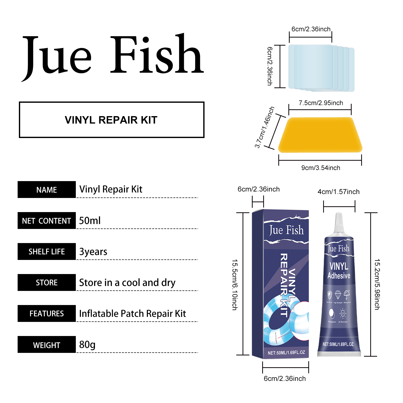 Jue-Fish Vinyl Repair Kit, Self-Adhesive Patch For Leak-Proof Sealing Of Inflatable Floating Appliance