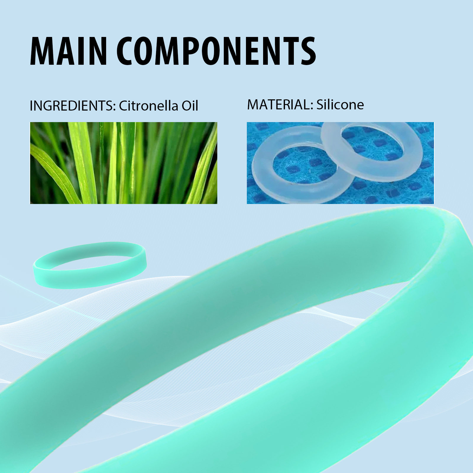 我们的驱蚊手环含有香茅油。它可以帮助赶走蚊子、蚂蚁、蟑螂和其他害虫防止害虫靠近你。它的使用方法很简单:把手环戴在手腕上,植物的香味可以驱蚊。并且可以防蚊虫、驱蚊。