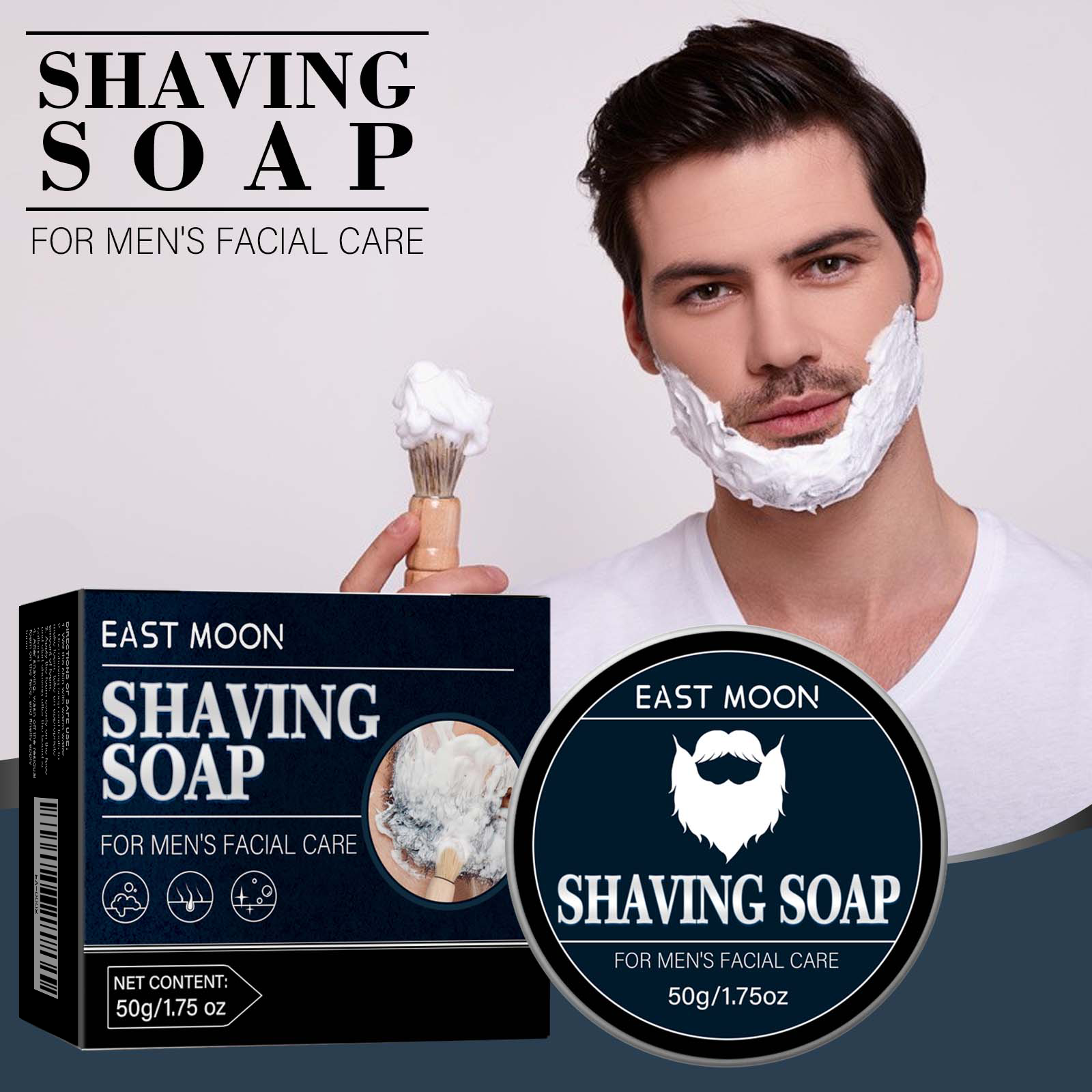 East Moon Shaving Soap For Men, Shave Beard Men's Facial Foam Rich Smooth Gentle