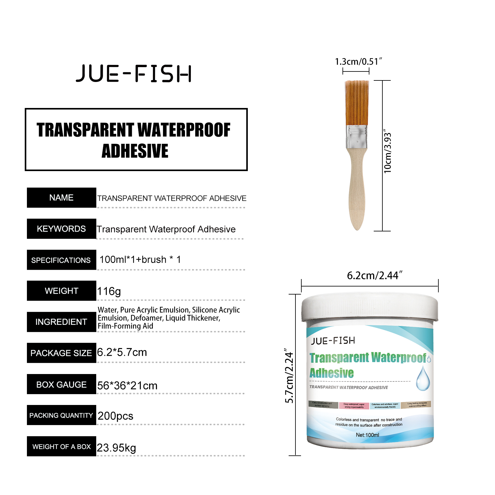 | 产品尺寸 | 防水胶:6.2*5.7cm,刷子:10*1.3cm |