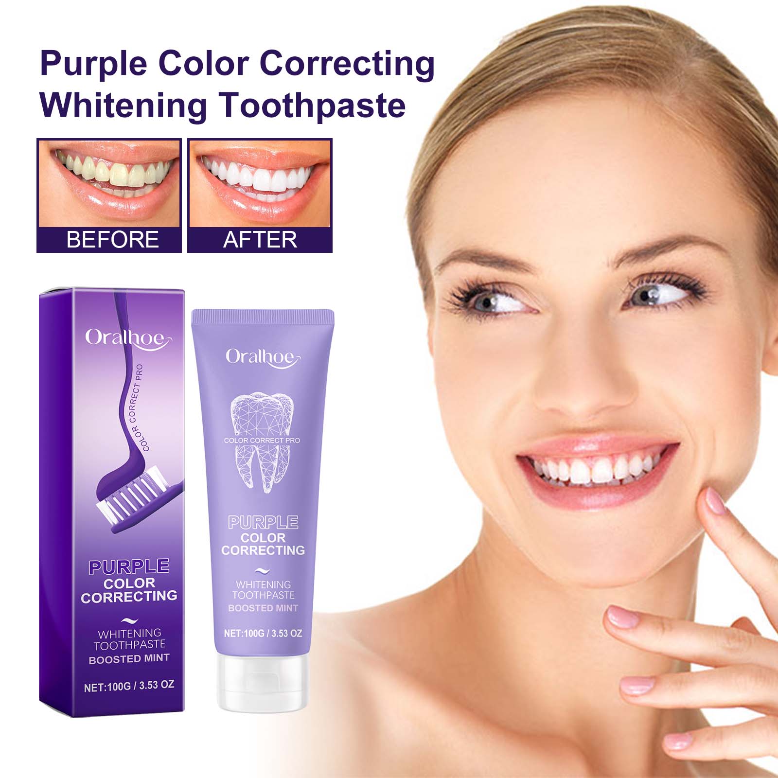 Oralhoe Purple Color Correcting Whitening Toothpaste, Double Peppermint Purple Toothpaste Clean Teeth And Fresh Mouth Care Toothpaste