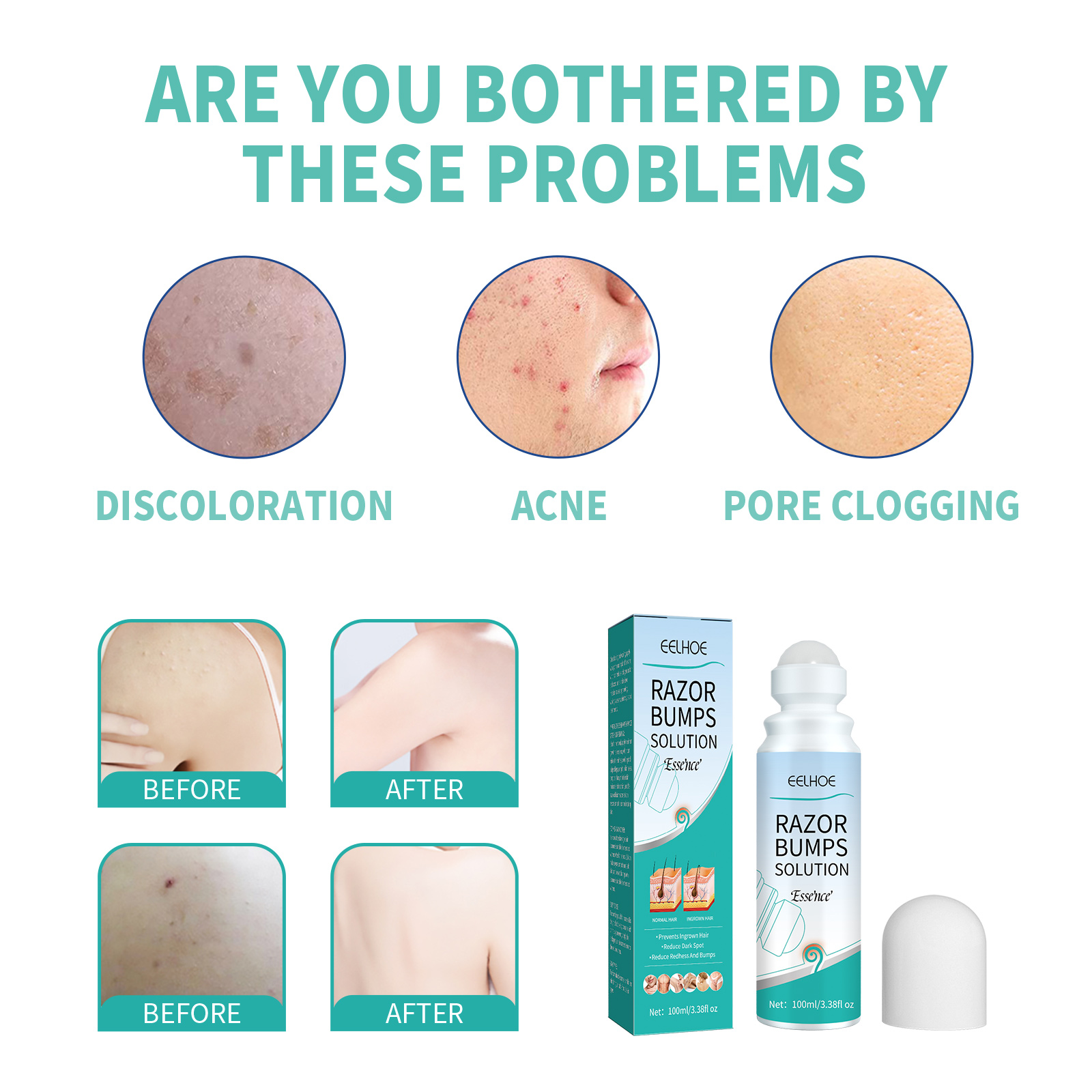EELHOE Shaving Lump Repair Roll Essence, Prevent Hair From Growing Inward Essence And Repair Skin Bumps