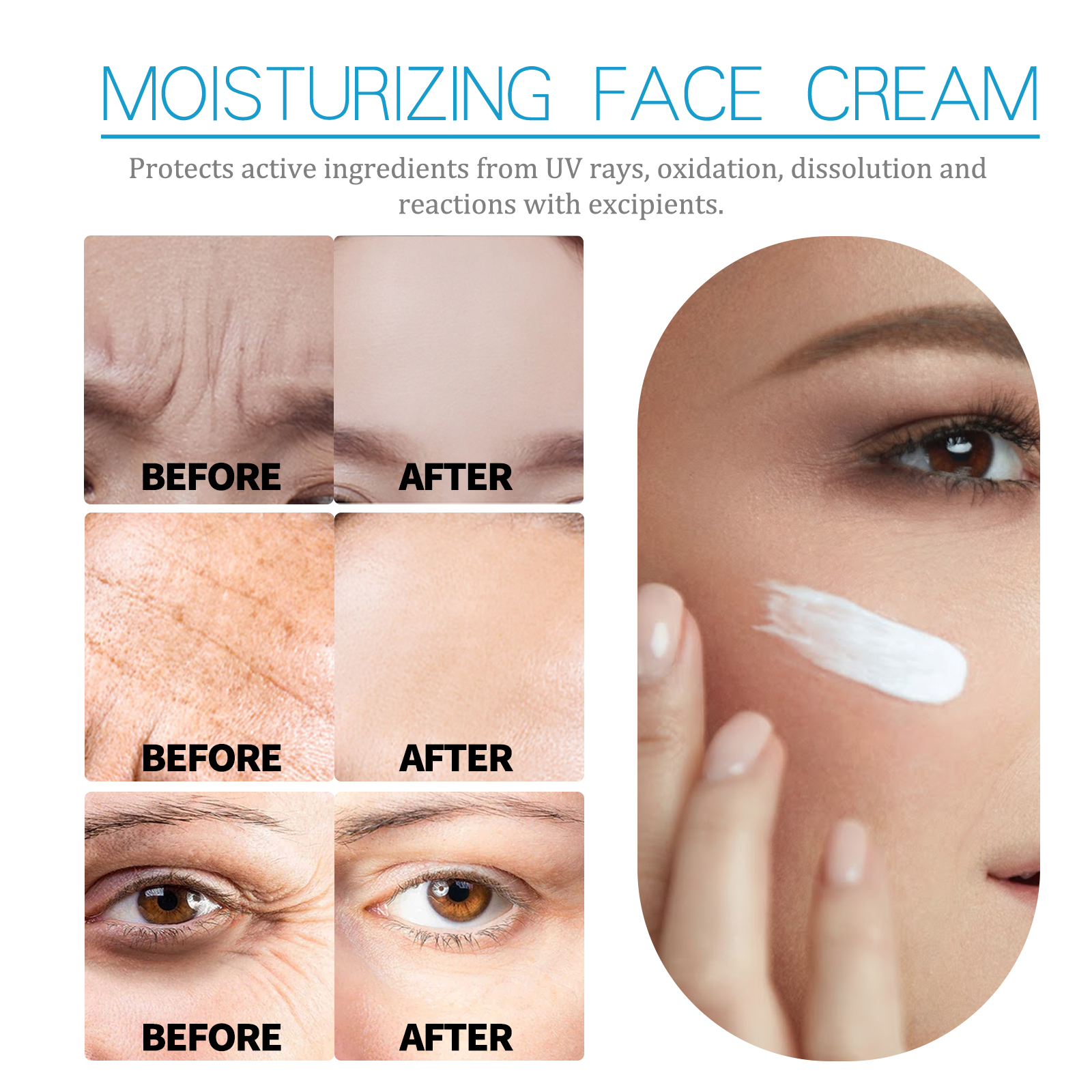 我们的防衰老保湿霜含有甘油、神经酰胺NP、烟酰胺。它可以收缩毛孔,淡化皱纹,减少紫外线、空气污染或其他环境异物的侵入,使肌肤细腻光滑。它的使用方法很简单:洁面爽肤后,按压1-2泵精华液喷于掌心,然后均匀涂于面部,用指尖轻轻打圈按摩至肌肤吸收。减少水分流失,增强皮肤弹性,从而减少细纹的出现。