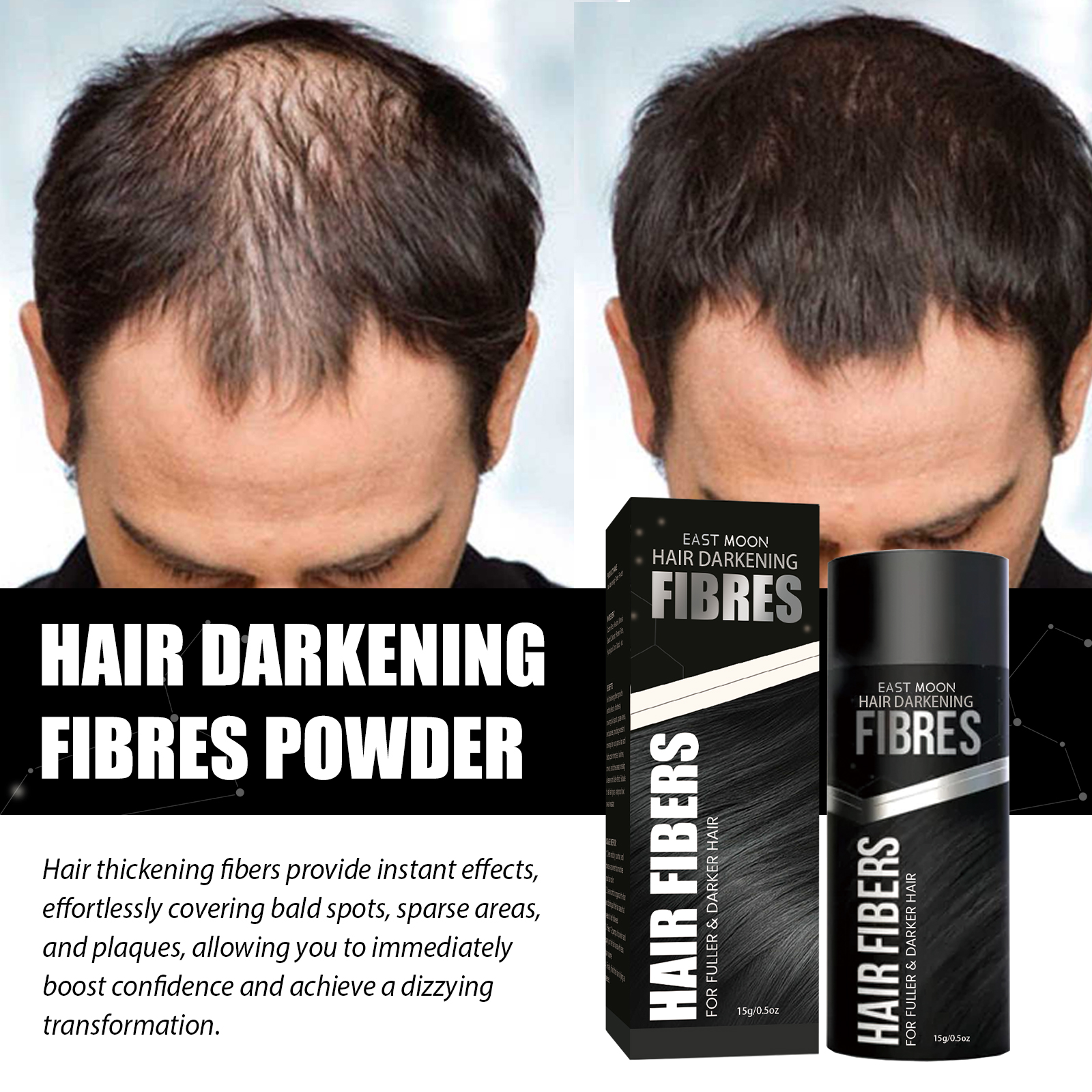 East Moon Hair Fiber Powder For Daily Care, Natural Hair Color Replenishment, Filling Of Hair Gaps, And Fluffy Covering