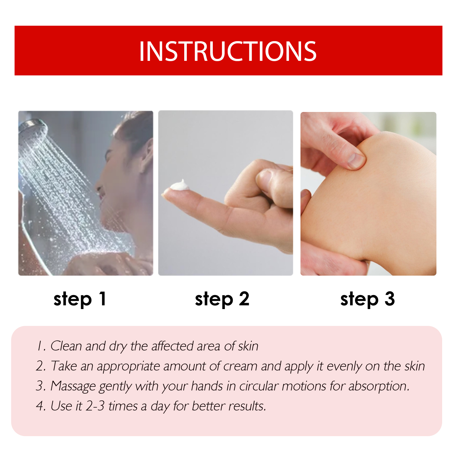 我们的关节护理霜含有寡肽、柠檬提取物、甘油。它可以有效穿透皮肤屏障,并针对皮下组织。它的使用方法很简单:1.清洁并干燥皮肤患处。2.取适量面霜均匀涂抹于肌肤上。3.用手打圈轻轻按摩吸收。4.每天使用2-3次,效果更佳。并且可以刺激受损细胞和组织的再生,帮助愈合过程。