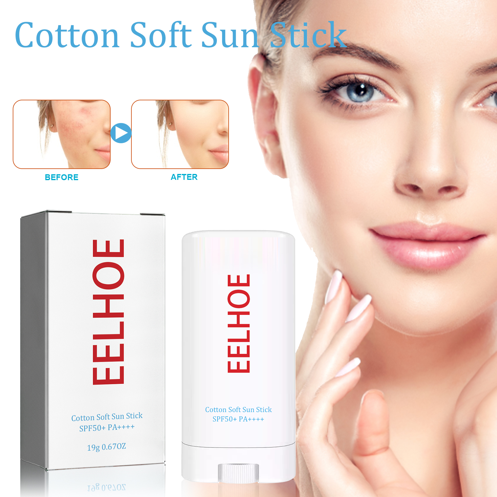 EELHOE Cotton Soft Protective Rod, Natural Concealer Refreshing Moisturizing Uv Protection Moisturizing Whitening Skin Protection Stick