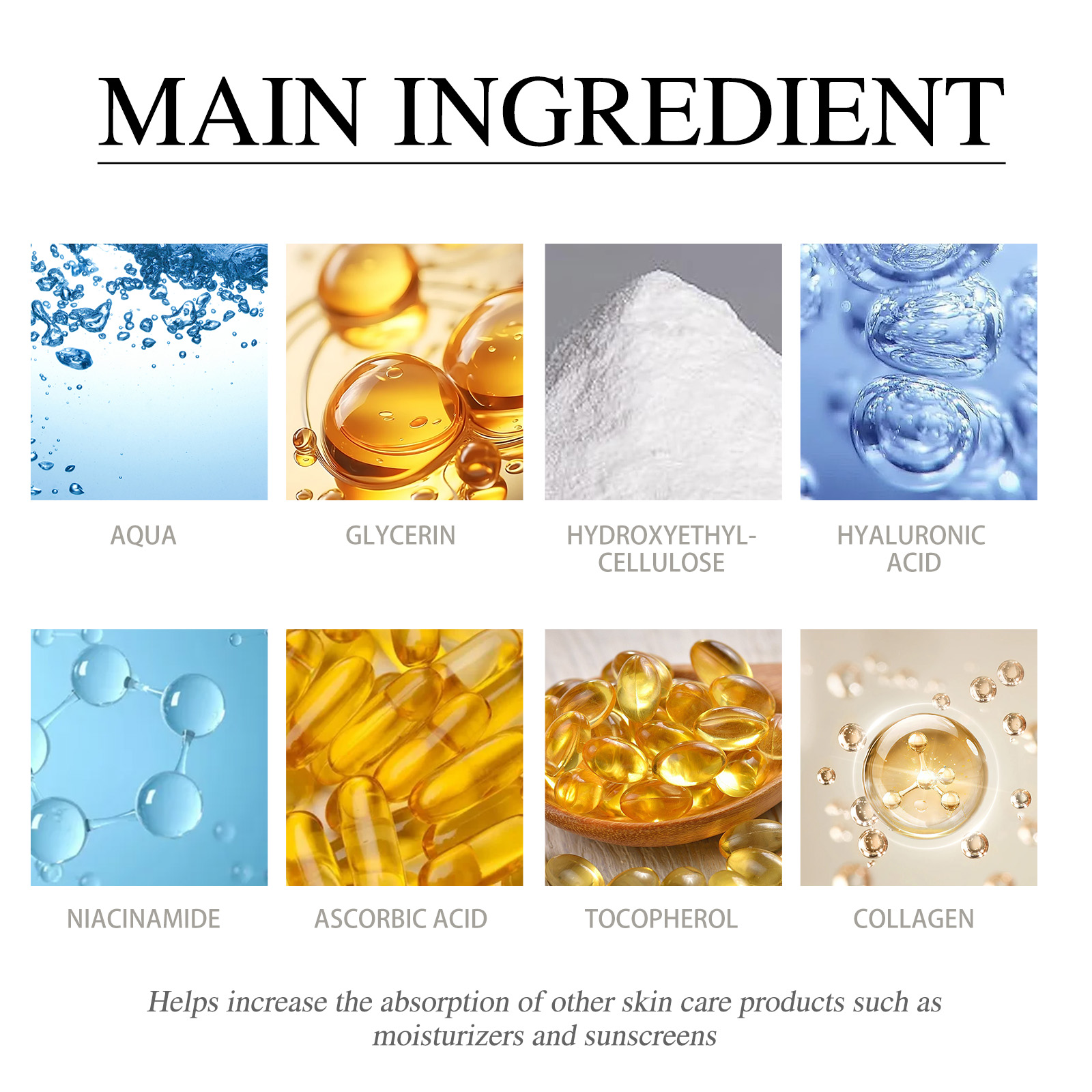 我们的5合1面部紧致精华液,由甘油、羟乙基纤维素精心调配而成。专为帮助刺激胶原蛋白的产生,对皮肤的弹性和紧致设计。使用方法极为便捷:洁肤爽肤后,取适量精华于掌心,均匀涂抹于面部,并以指尖轻轻打圈按摩吸收。每日使用,效果更佳。并且可以增加皮肤的水分水平,使肤色健康、明亮。