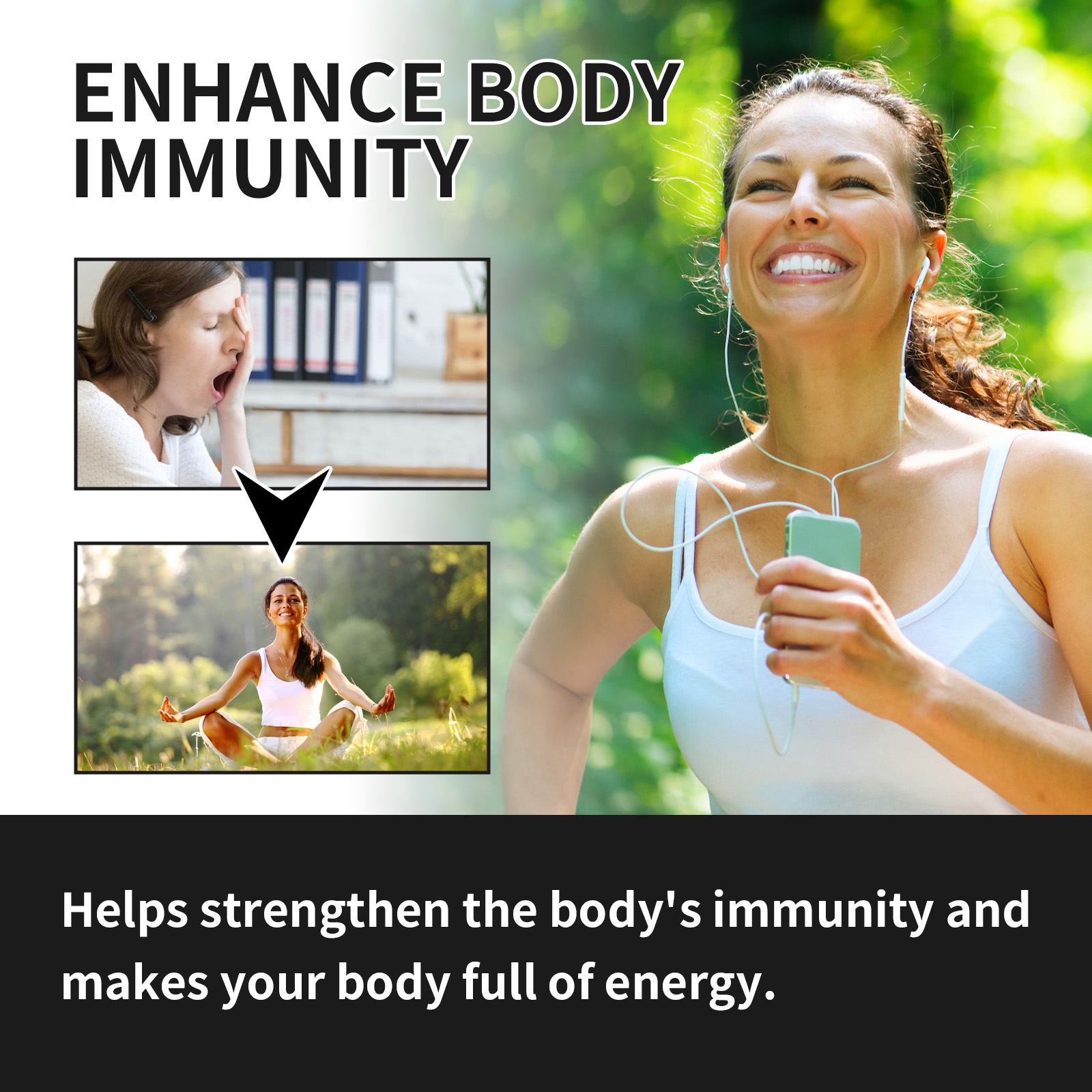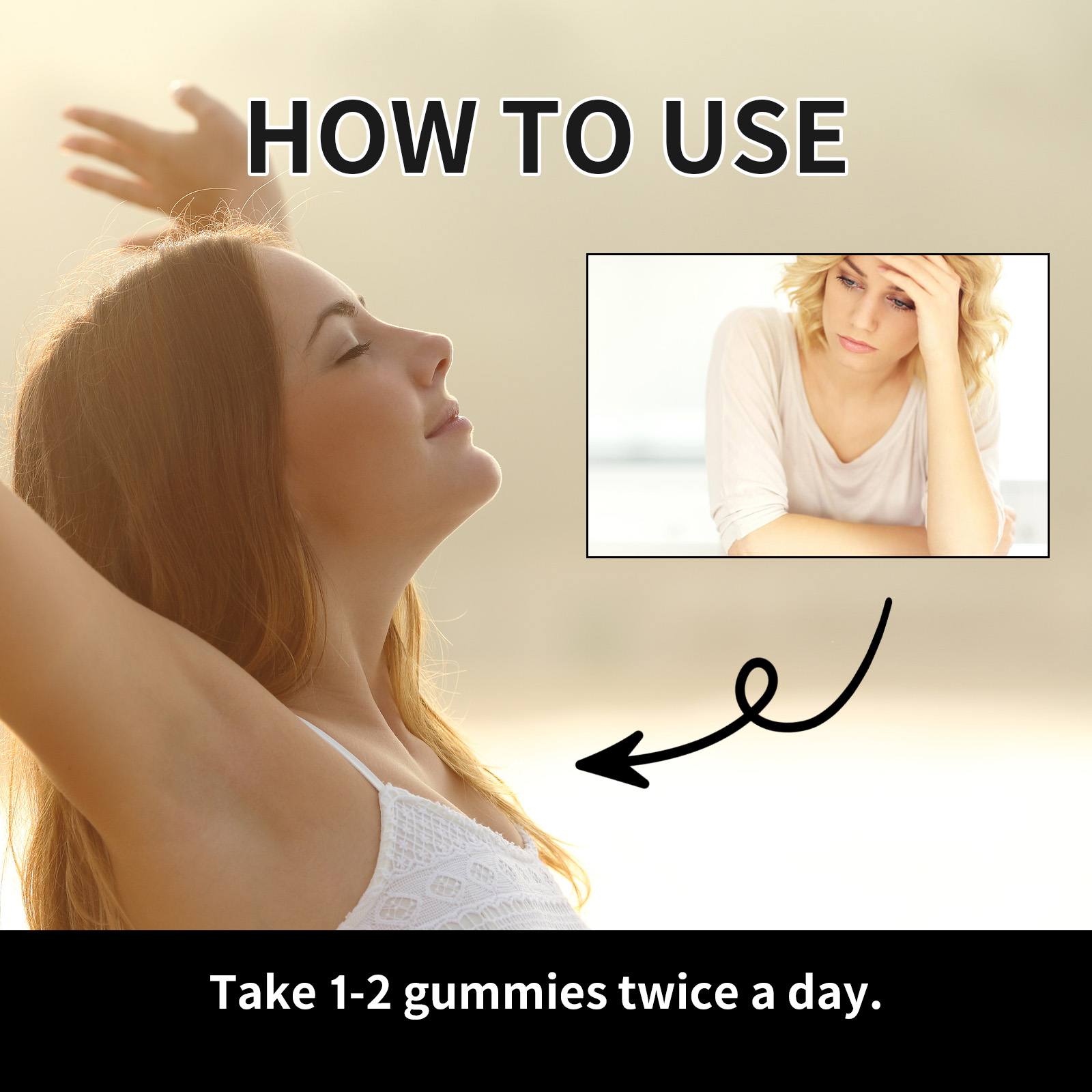 我们的膳食补充剂软糖含有白糖粉、蓝莓浓缩汁。它可以帮助清除体内的杂质使你的身体恢复到健康状态。它的使用方法很简单:每天睡觉前吃1-2颗软糖,一天两次。并且可以增强睡眠质量,让你整晚更加熟睡。
